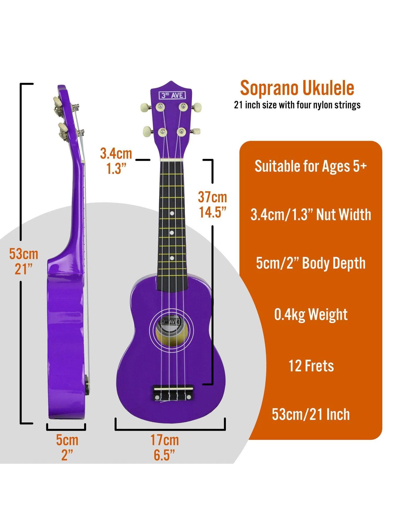 Introducing the ideal ukulele for beginners! This traditional soprano 21-inch ukulele is the ideal choice for learning your favourite tunes and having endless fun. Handmade with laminated poplar, it produces a vibrant tone, while the soft-touch nylon strings and low string action make it easy to play without hurting your fingers. Stay in tune with the 3-in-line geared metal machine heads and the stabilizing poplar bridge.