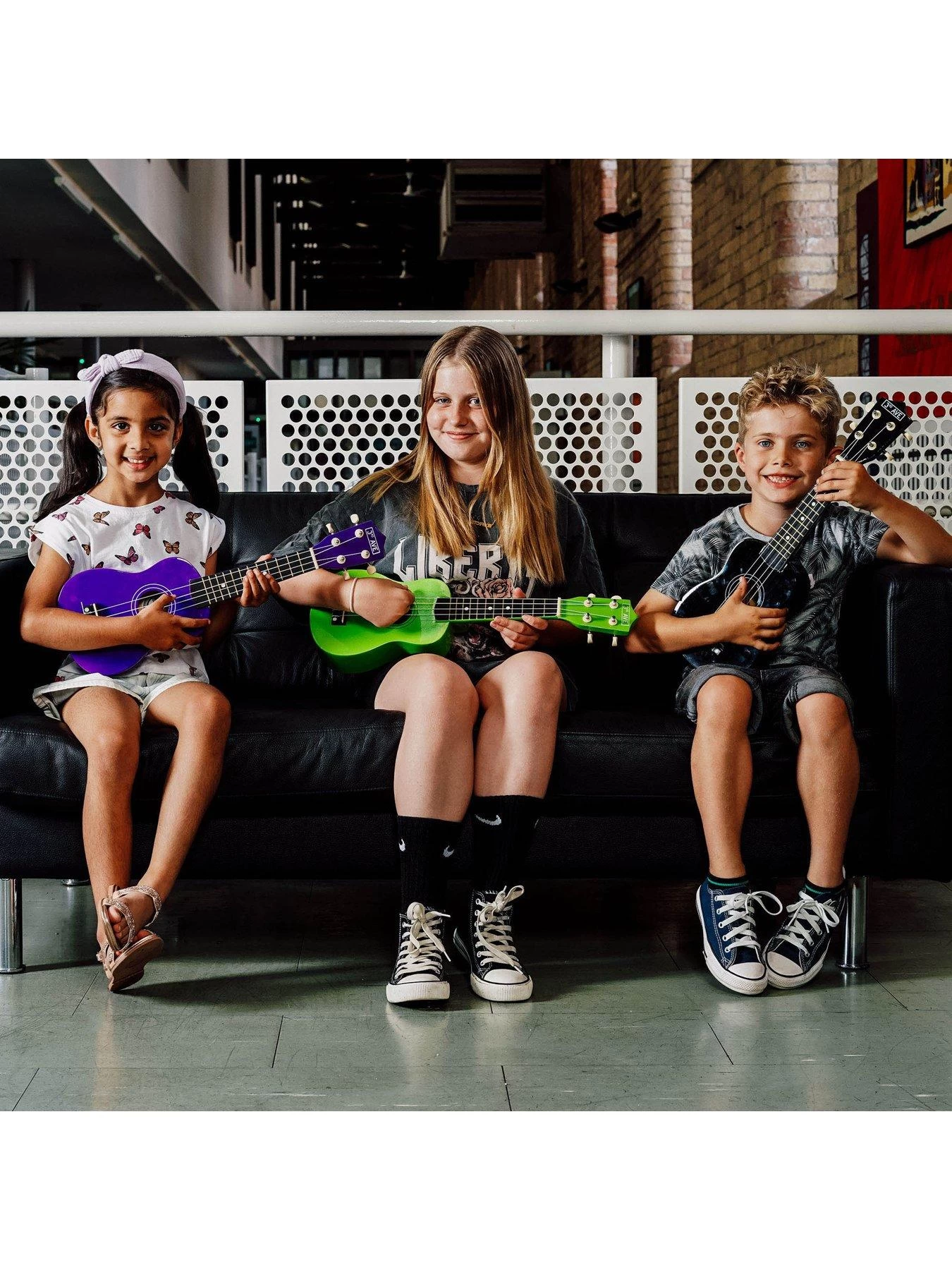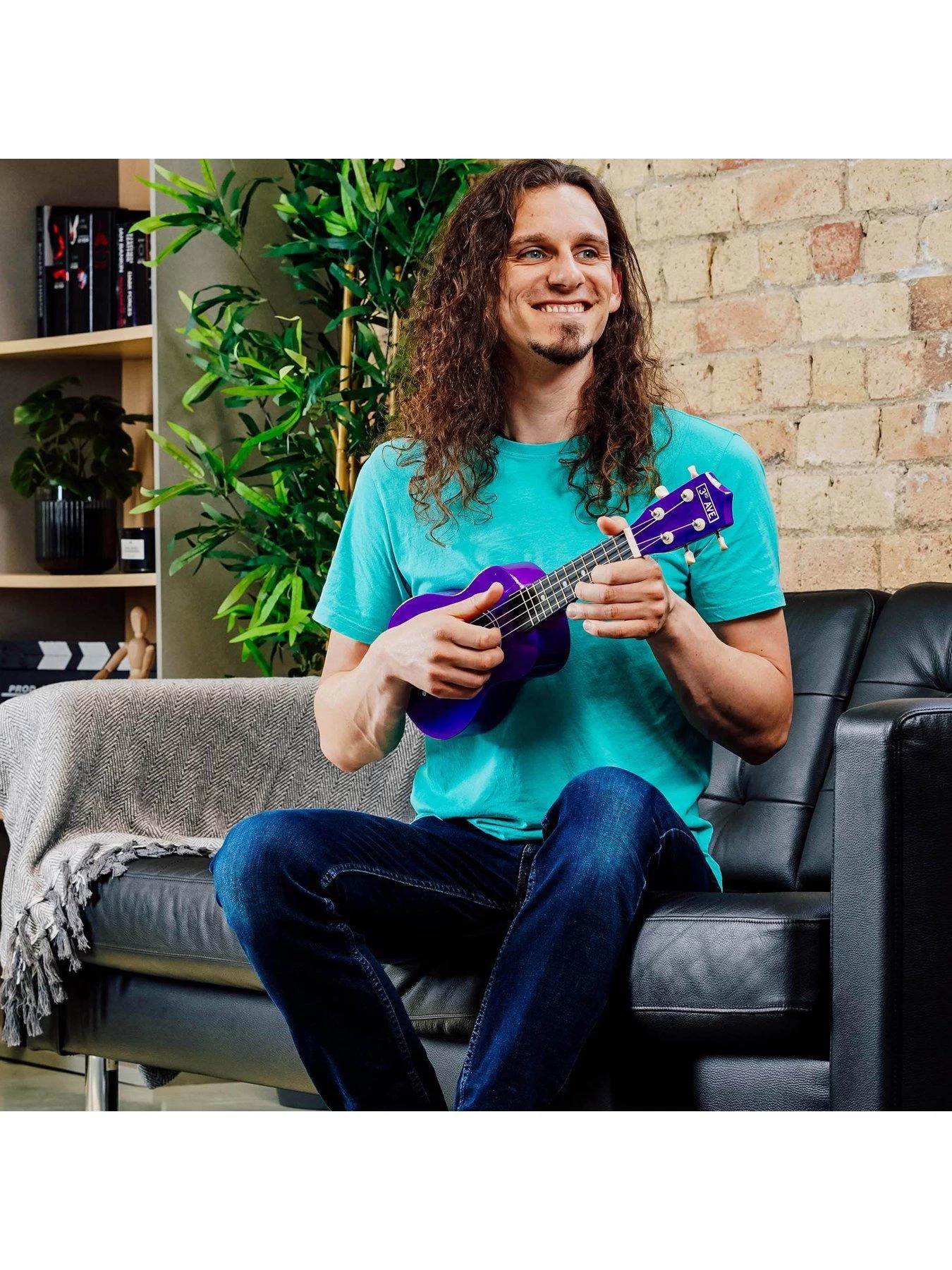 It comes with everything you need, including a zipped carry bag, spare strings, picks, fret stickers, and a fold-away stand. Available in a huge variety of colors, this soprano ukulele is one of the most popular instrument for beginner musicians.
