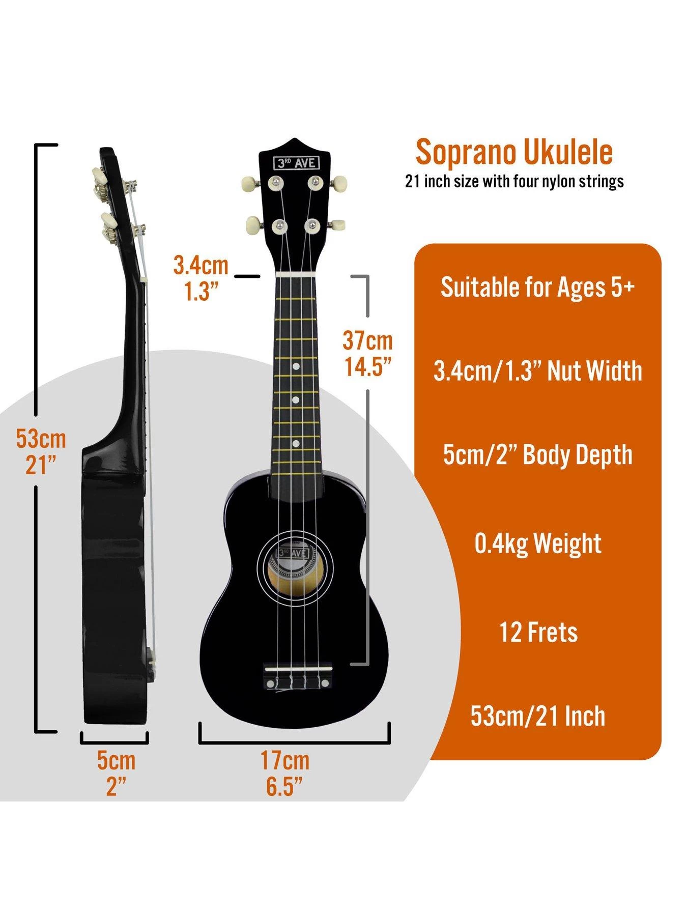 Ideal for beginners and students of any age, the 3rd Avenue ukulele is the perfect choice to start learning your favourite tunes. Making sure that you’ll always sound great, these 3rd Avenue models are ideal for first time beginners, education or ensemble work. This ukulele is a soprano (21 inch) sized model which is the easiest to get your hands around, especially for younger players. Equipped with a carry bag so you can take your uke everywhere you go, whether that be school, lessons, friend’s house or even on holiday! In this great value bundle, you also receive a spare set of nylon strings, clip on tuner, wooden stand, picks, strap and fret note stickers.