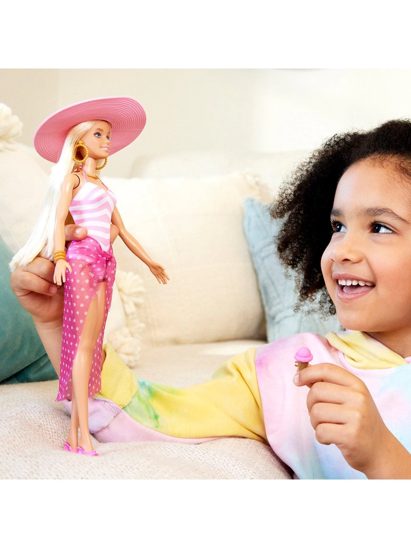 - Kick back at the beach with this Barbie! Her super cute fashion and themed accessories will inspire kids to dream up summer stories under the sun.
