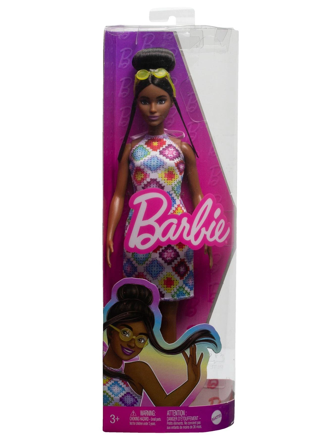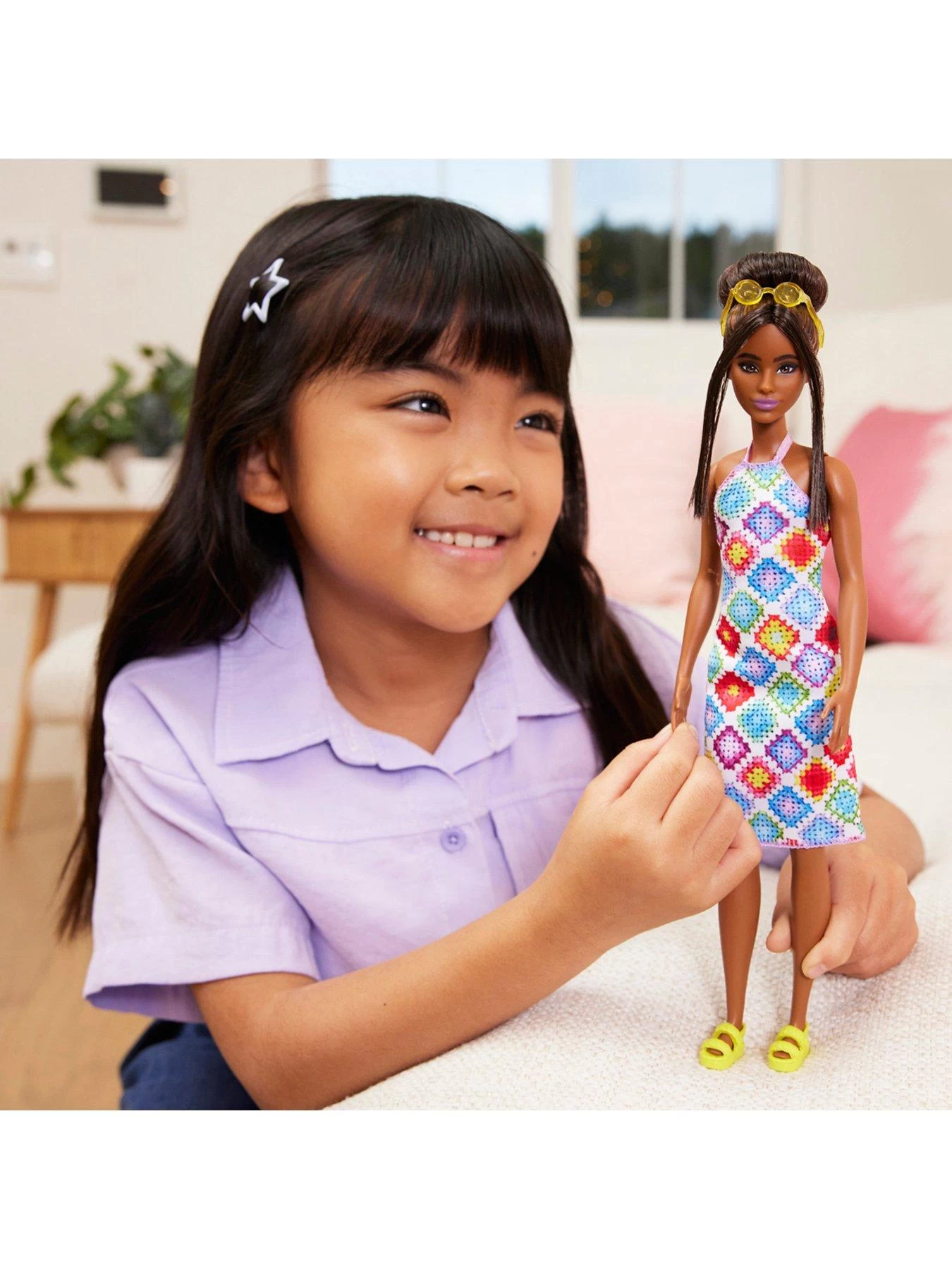 This Barbie Fashionista Doll is effortlessly fabulous with her Bun and Crochet Halter Dress!