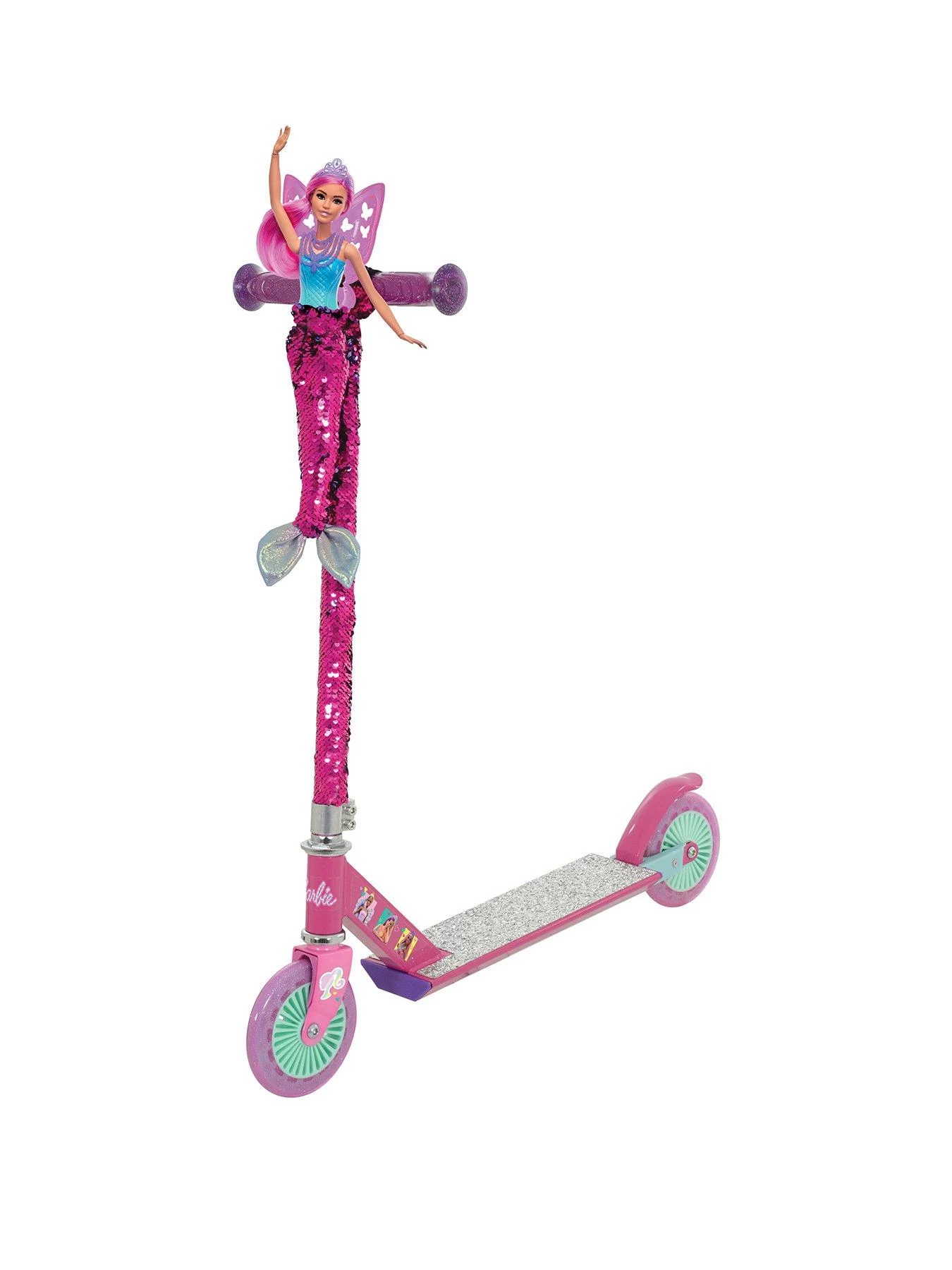 Get about in style on the beautiful Barbie Fixed Inline Mermaid Scooter.