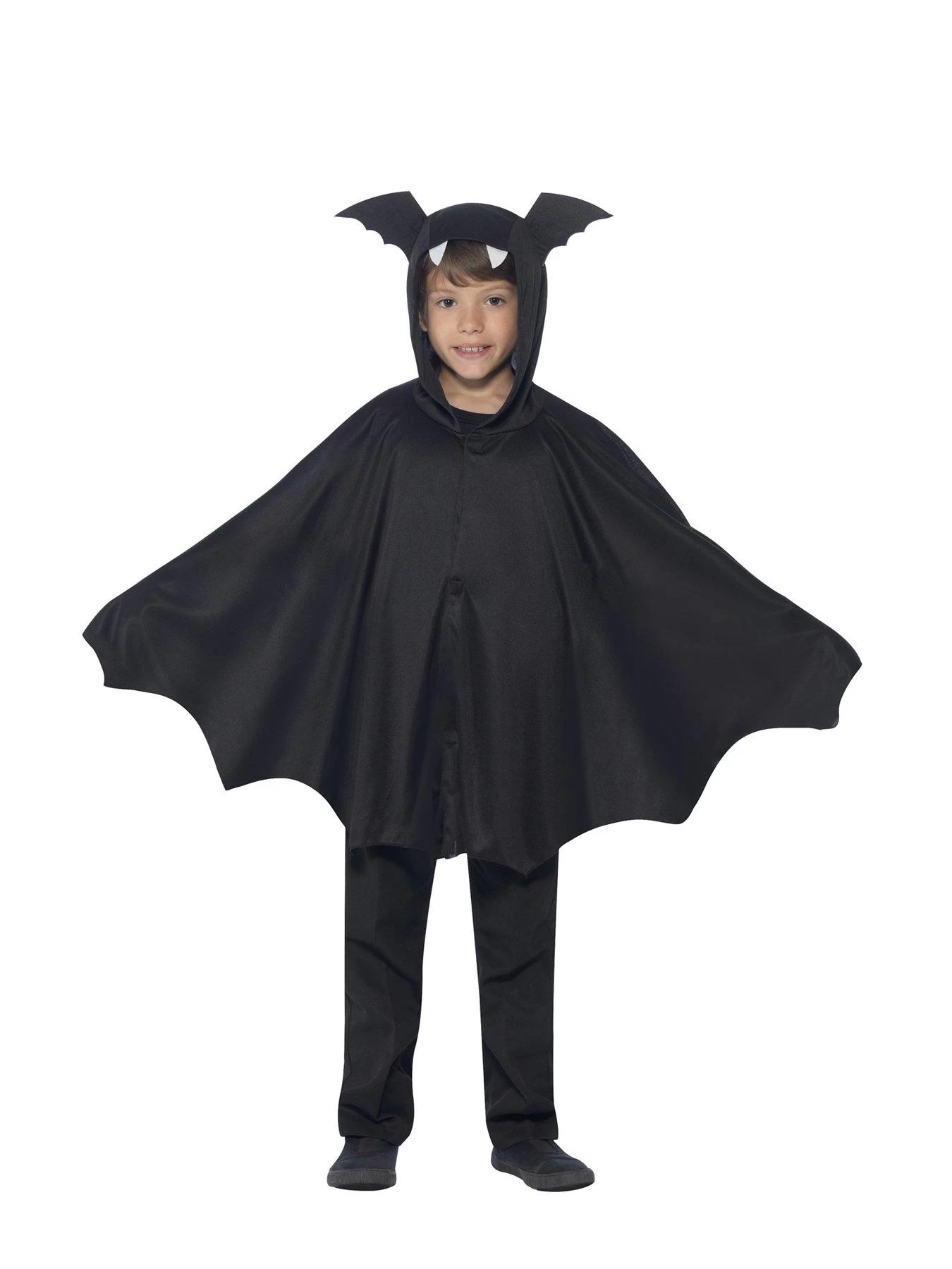 Ideal for Halloween parties and trick or treating, this brilliant black hooded Bat Cape can easily be worn over an all-black outfit for a quick and easy costume change!