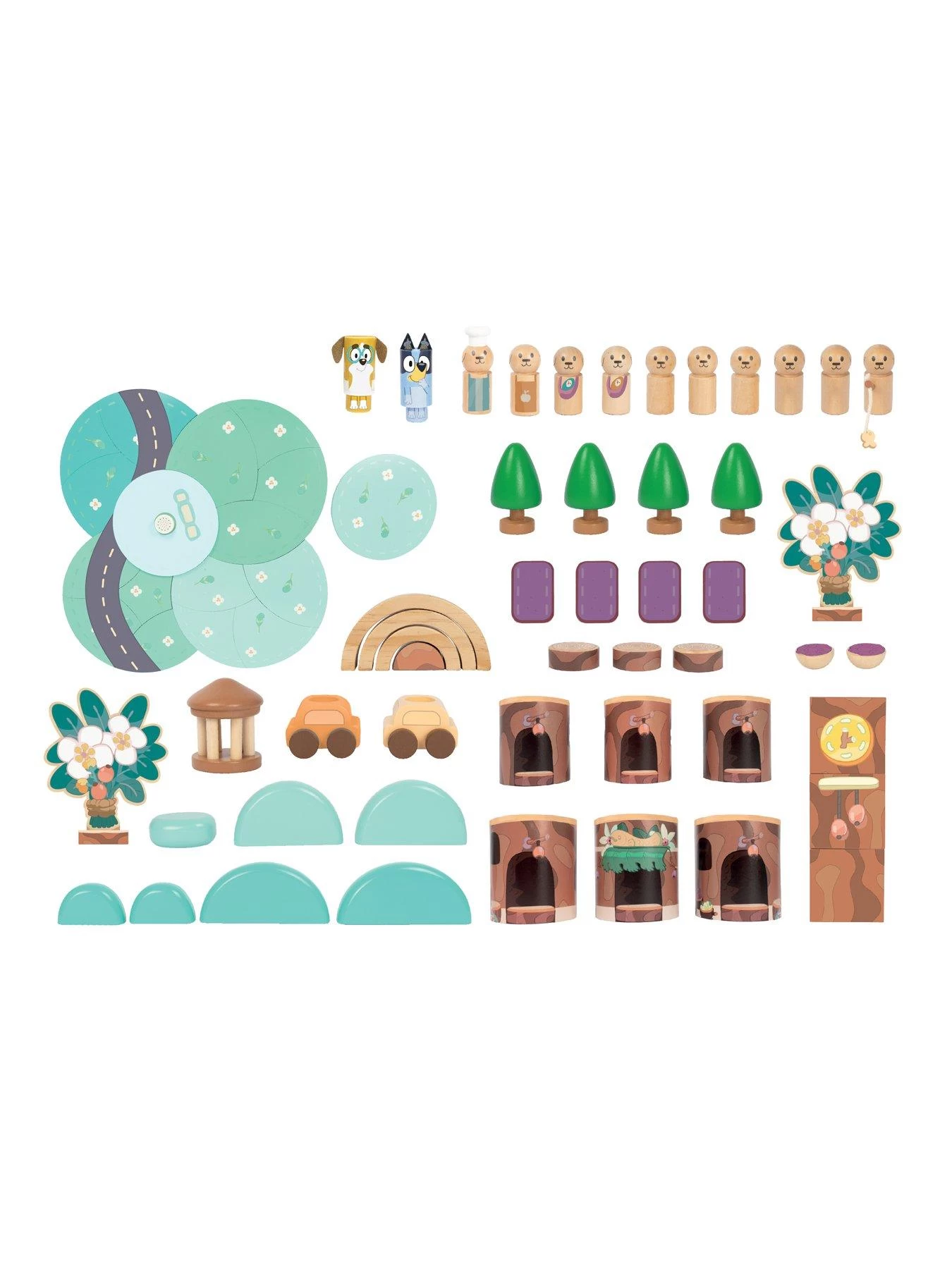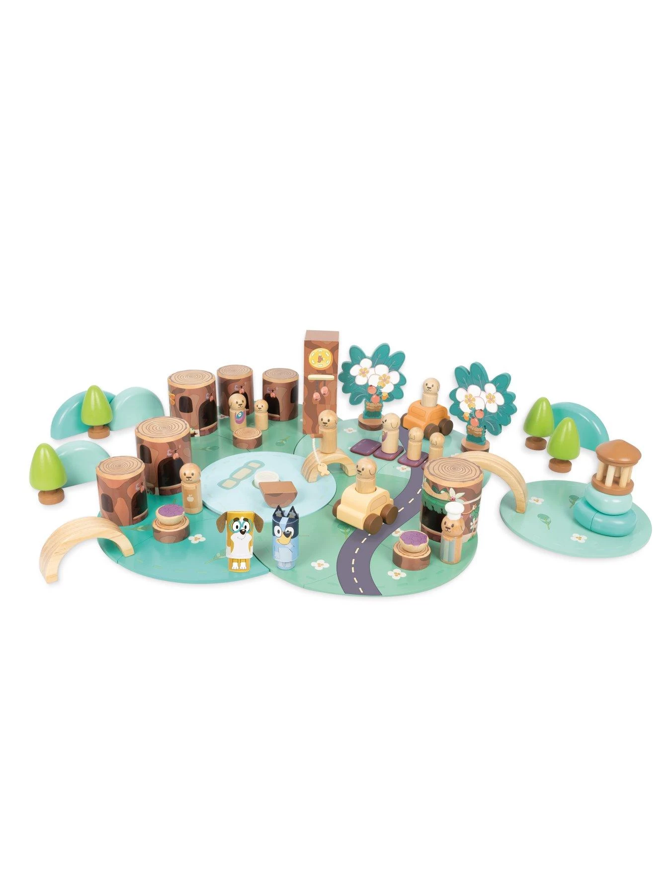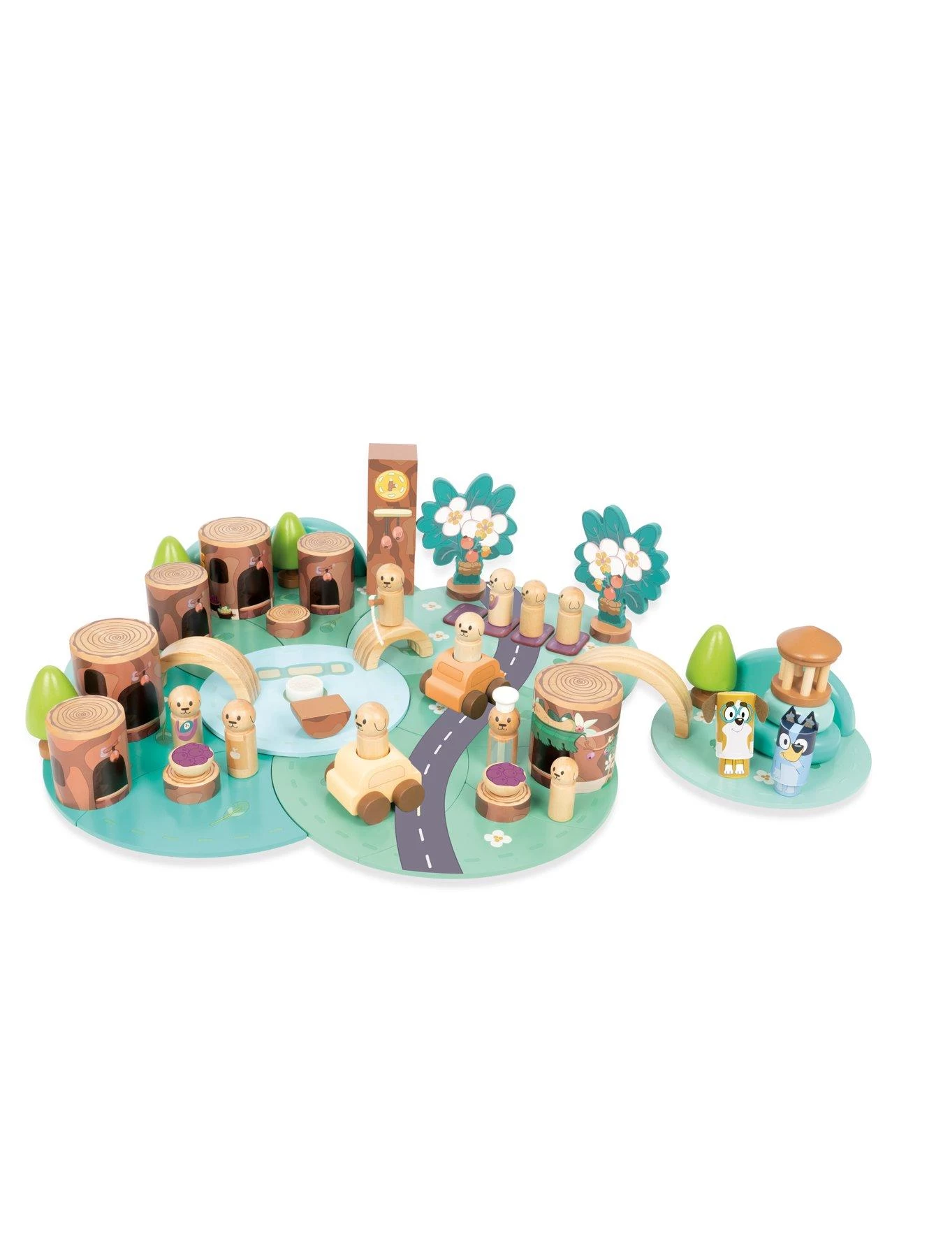 Just as seen on the show, this Bluey Wooden Gnome Village is the perfect play set for Bluey fans. Piece together the puzzle mat and start adding the log homes, trees, stacking hills, clock tower and more to build your very own Gnome Village. Don’t forget to put down the bridge and steppingstones so the characters can cross the lake! Gnome figures and 3D Bluey characters bring the village to life as children play out their imagination. This amazing Bluey Wooden Gnome Village also helps develop their motor skills as they build and stack up the accessories.
