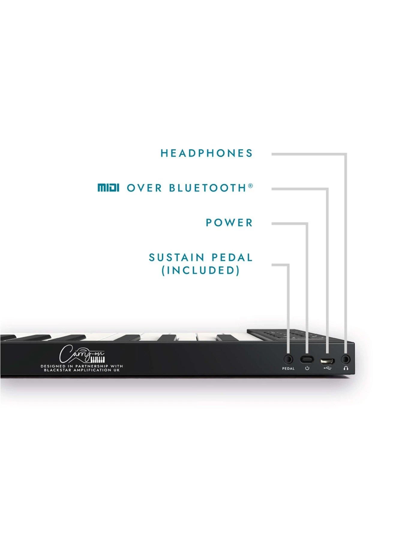 Weighing in at only 1.6kg and measuring only 33cm long when folded, the Carry-on folding piano is a unique full-length 88-key piano in a foldable, easy to store and portable format. Thanks to its clever design and velocity sensitivity, the keys feel like a real instrument making the Carry-on piano the perfect solution for entry-level students to seasoned professionals. Play any time using headphones or the built-in stereo speakers. With 128 sounds and accompaniments and MIDI over USB and Bluetooth, this is the ultimate go anywhere piano practice and recording system.