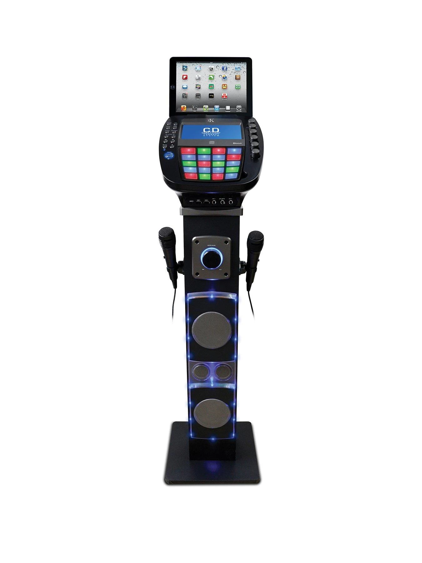 - Complete with disco lights, echo and balance key controls to enhance your whole singing experience.