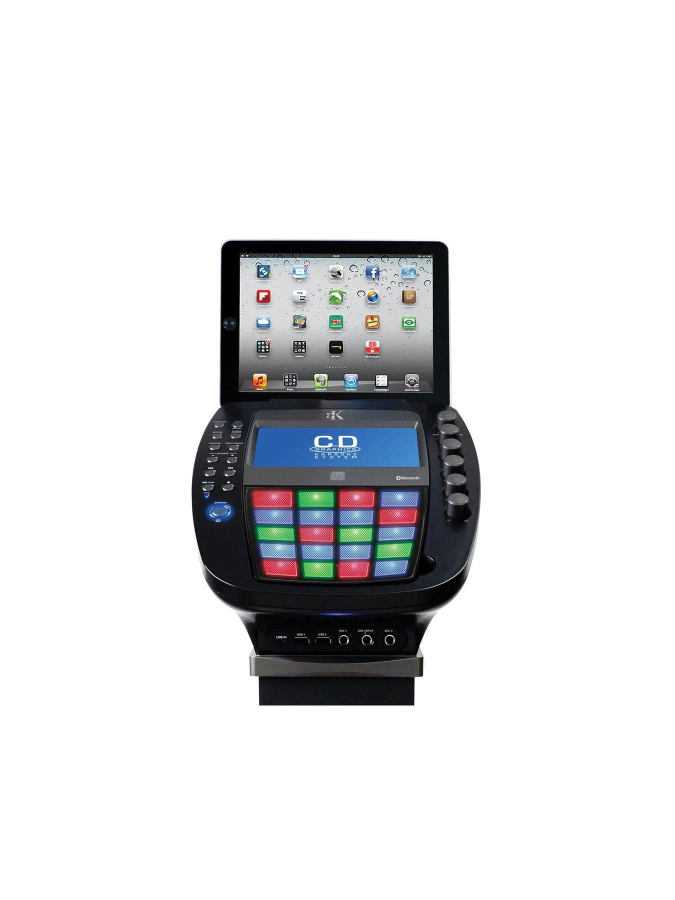 - 6 speaker professional CDG karaoke system with bluetooth connectivity and 2 microphones plus a demo disc to get your party started