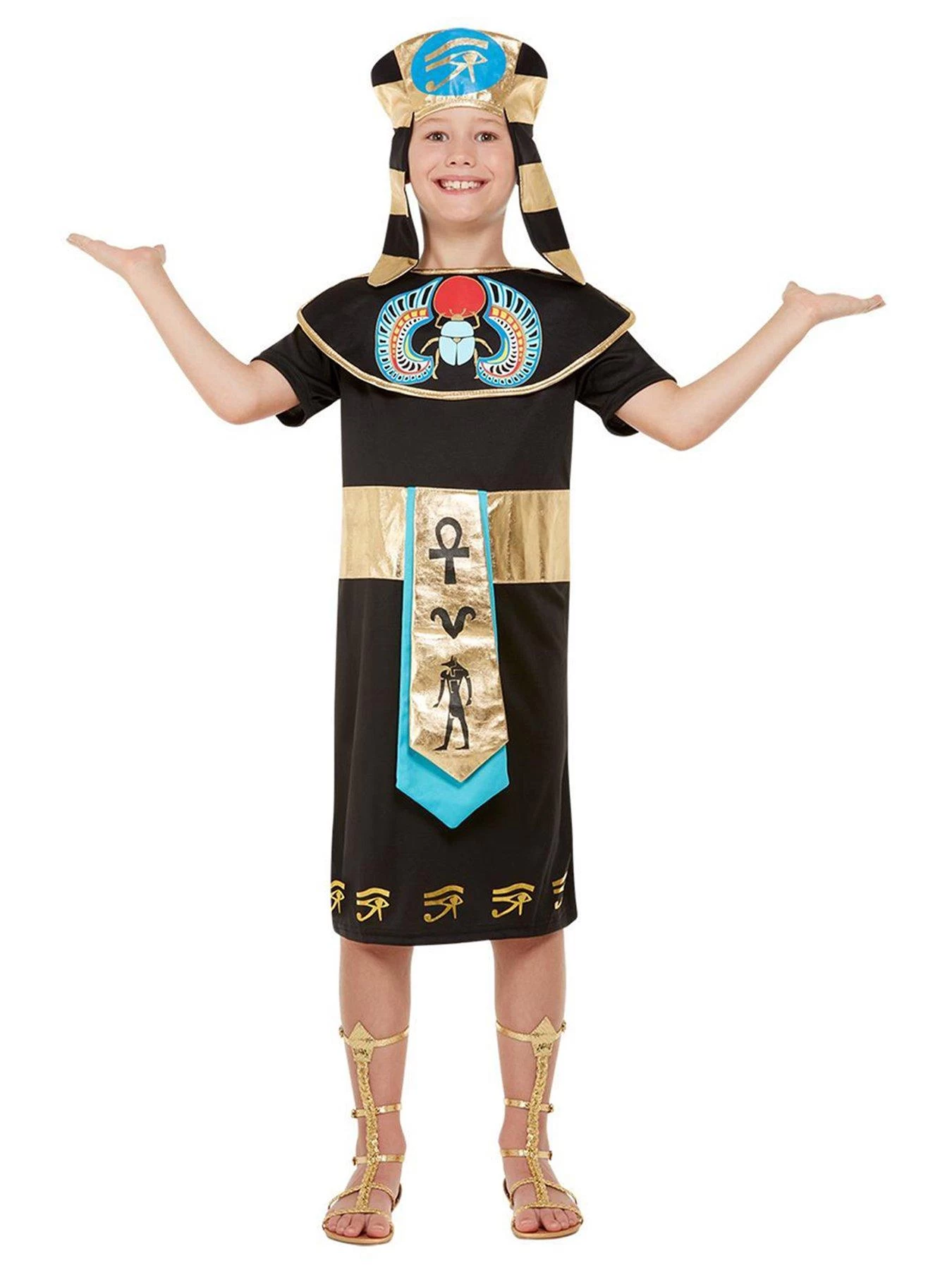This boys Egyptian fancy dress costume includes black tunic and headpiece. It has an authentic style that makes it perfect for a school production, Halloween or fancy dress parties.