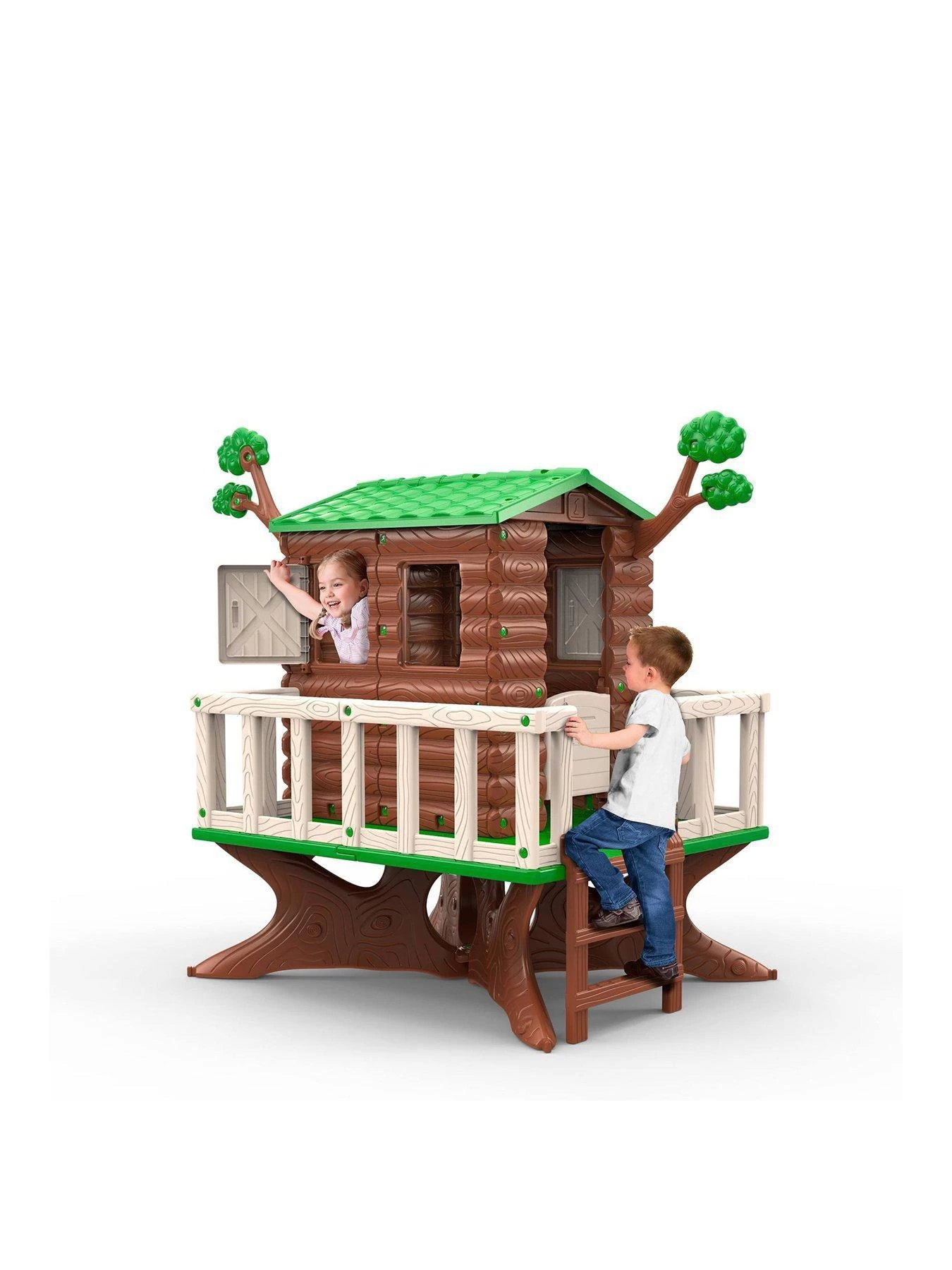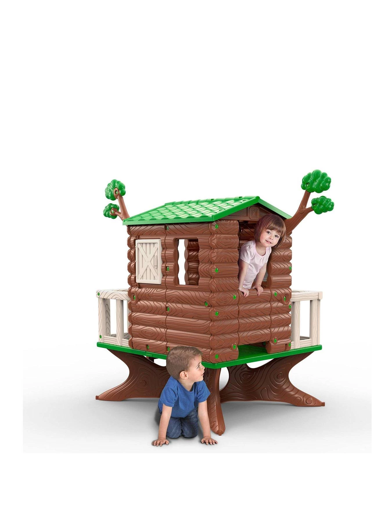 * It is elevated like a real tree house, and has a large space inside with 4 windows (2 windows to close), 1 door, stairs and a railing