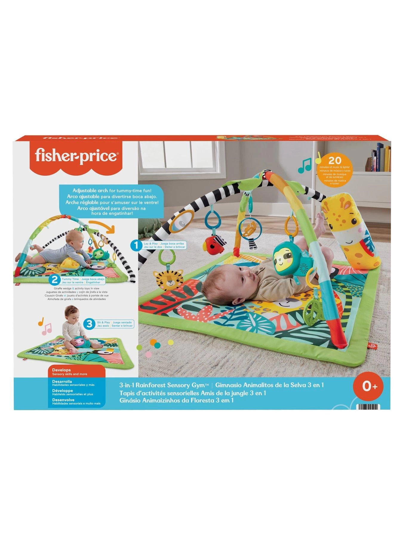 The Fisher-Price 3-in-1 Rainforest Sensory Gym grows with your baby from newborn to toddler, offering wild sensory delights along the way.Â