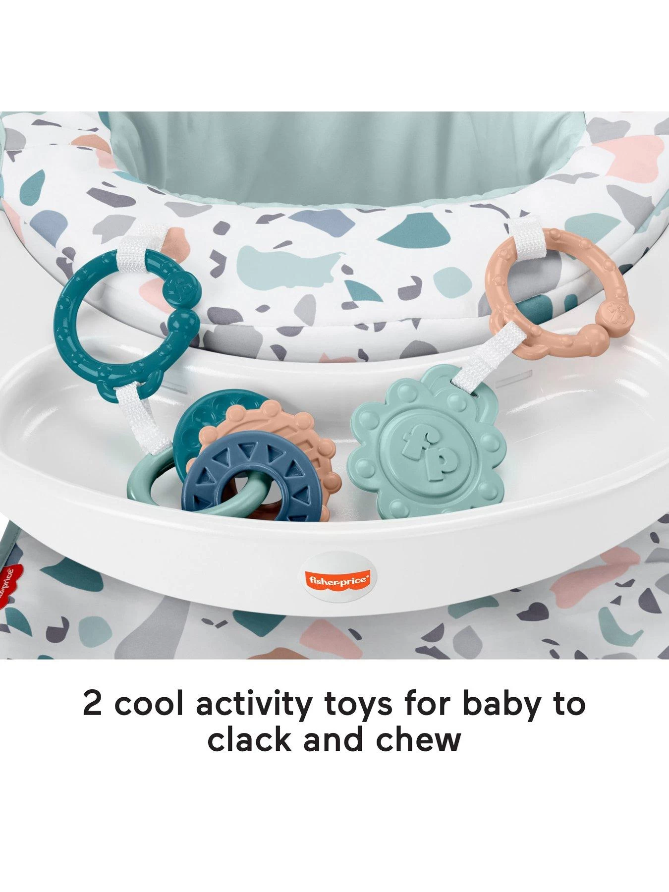 - 2 linkable toys for playtime and a removable, dishwasher-safe tray for snack time