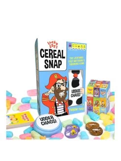 The lightning fast matching and throwing game! Fun for all the family. Snap your way through spoof cereals, slam the buzzer, then throw & dodge the Udder Chaos Carton! For 3 – 16 Players.