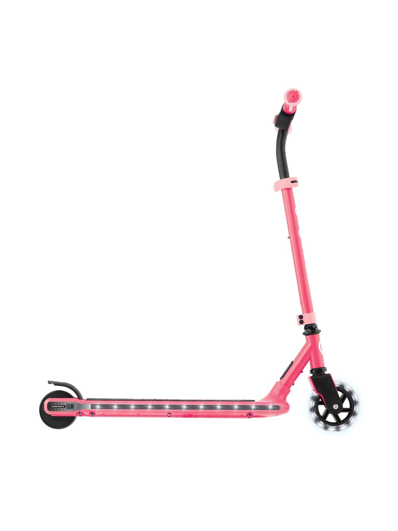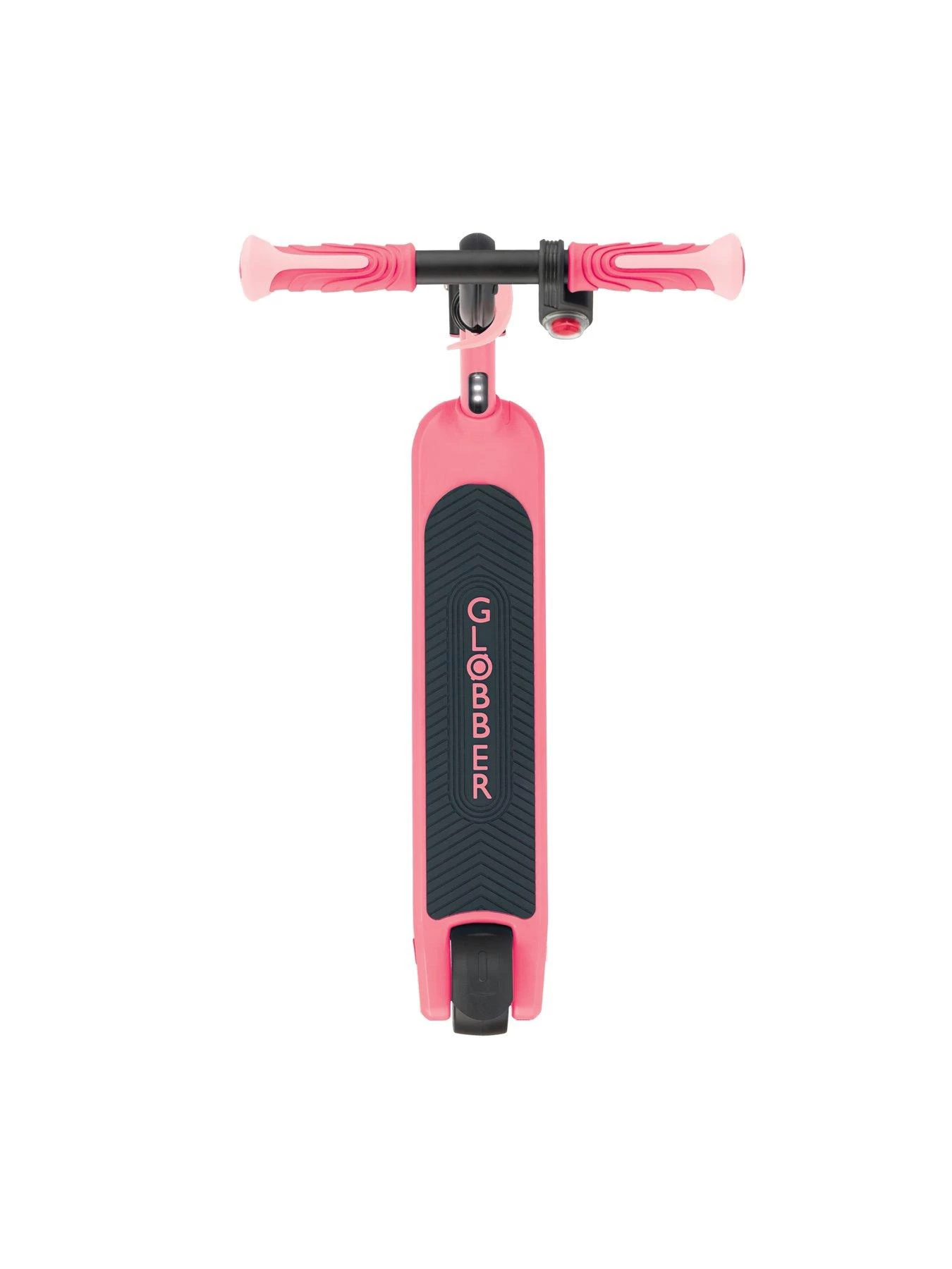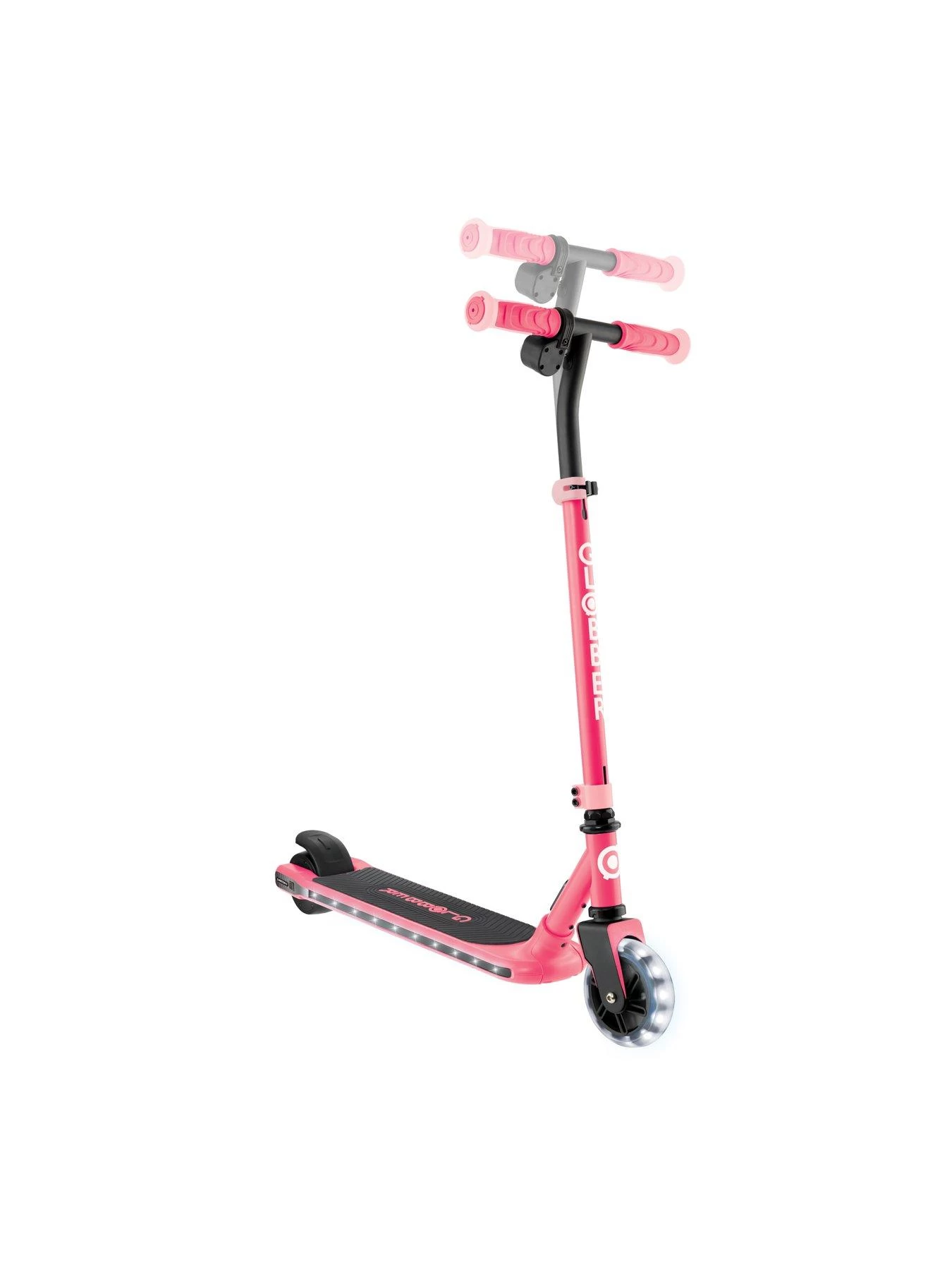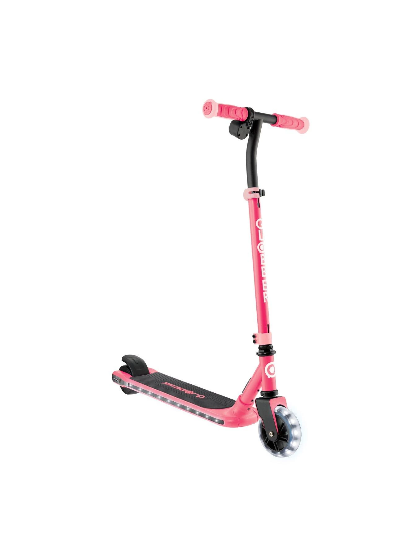 Children can go electric and play all day with the Globber E-MOTION 6! The Globber E-MOTION 6 allows for 2-wheel safe scooting with the 80W brushless motor and 14.4V lithium battery. The kid-friendly throttle means that children can cruise safely. The push-button throttle is integrated into the handlebars so your child’s hands can stay firmly on the T-bar as they steer and move at safe speeds (2 built-in speed modes of 0-6km/h and 0-10 km/h). The Globber E-MOTION 6 has both an E-ABS and mechanical rear brake. This dual braking system ensures safe deceleration and efficient braking. Adapt the scooter as your child grows with the 2-height adjustable, super-wide T-bar, combined with TPR grips, for comfortable cruising. The scooter’s super-wide, anti-slip, light-up deck means kids can keep both feet comfortably on the scooter as it lights the way. Battery-free LED white light-up wheels flash as kids scoot for extra style.