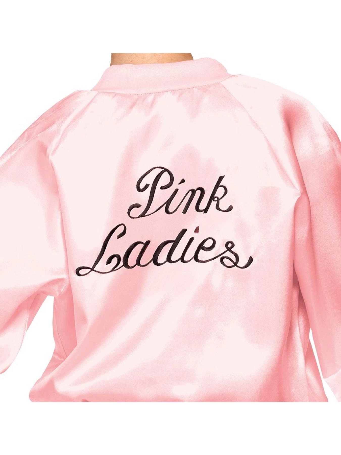 This outfit will certainly help your little star act, look and feel cool. This Pink Ladies satin jacket has a zip front and embroidered Pink Ladies logo on both the front and back.