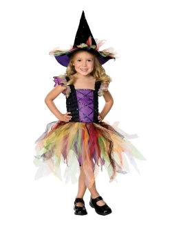 It is comprised of a pretty glitter witch tutu dress and matching hat. Available in:
