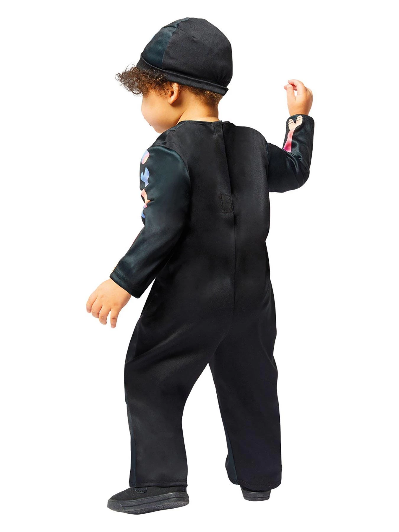 Your toddler fan can experience Halloween in style, with this Ombre Skeleton Costume. The printed jumpsuit is perfect for children who don’t like scary outfits but do like vibrant colours. It comes with a coordinating skull hat to help keep their head warm while trick or treating.