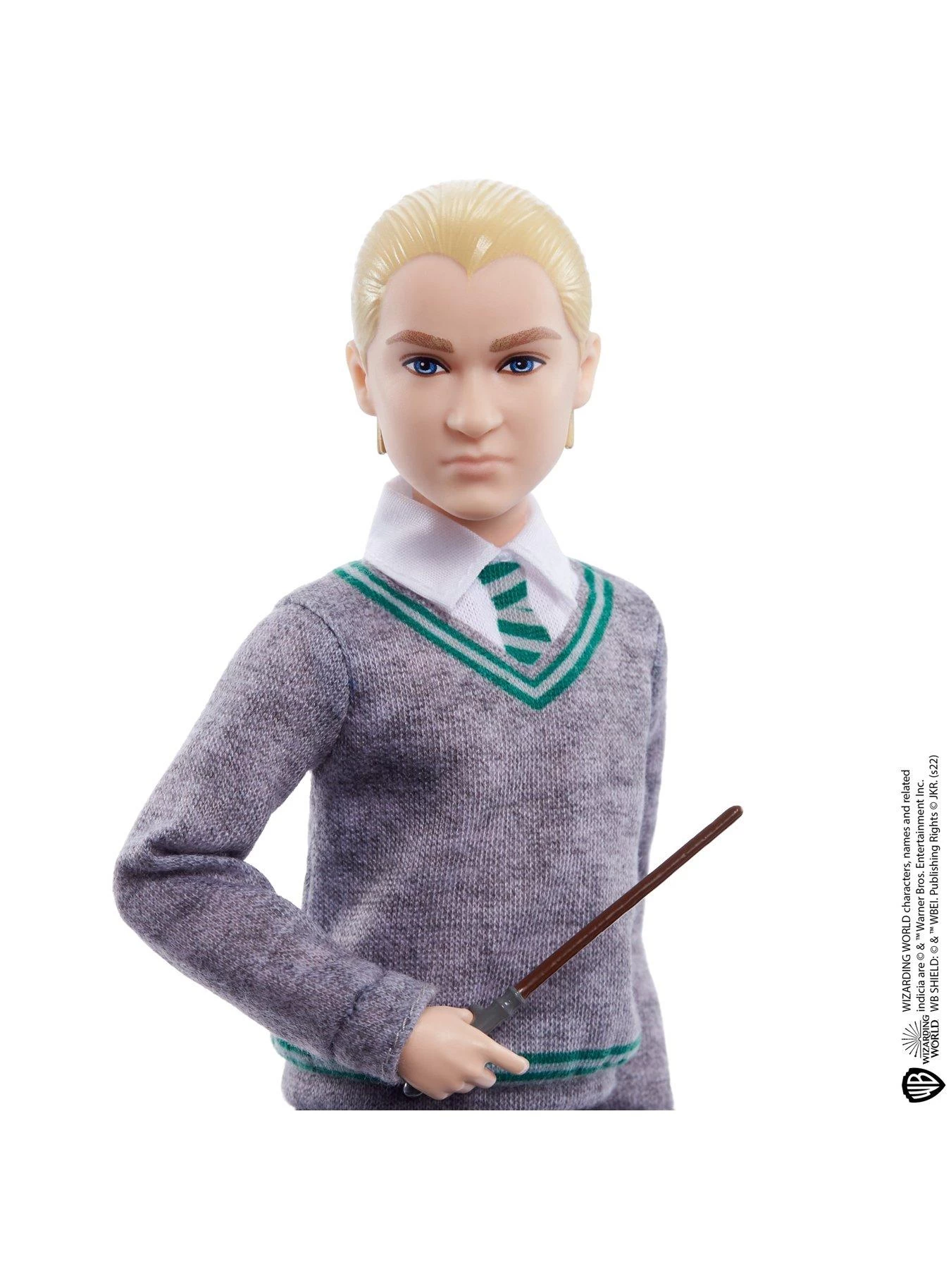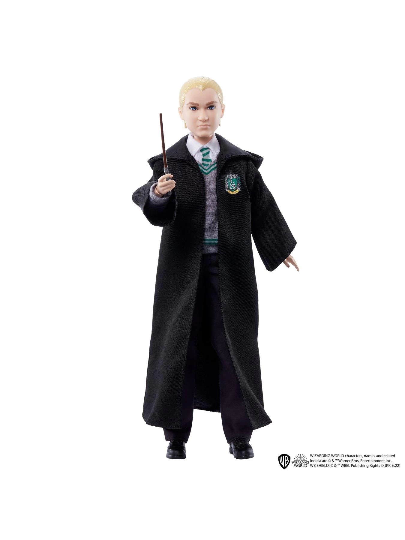 The Harry Potter Draco Malfoy doll has true-to-movie details to match the iconic character! Draco comes in his Hogwarts uniform with a Slytherin robe and includes his wand. Draco can move for every spellbinding play! Recreate the Wizarding World and add to your Harry Potter collection with Draco Malfoy! Each sold separately, subject to availability. Doll cannot stand alone. Colours and decorations may vary.