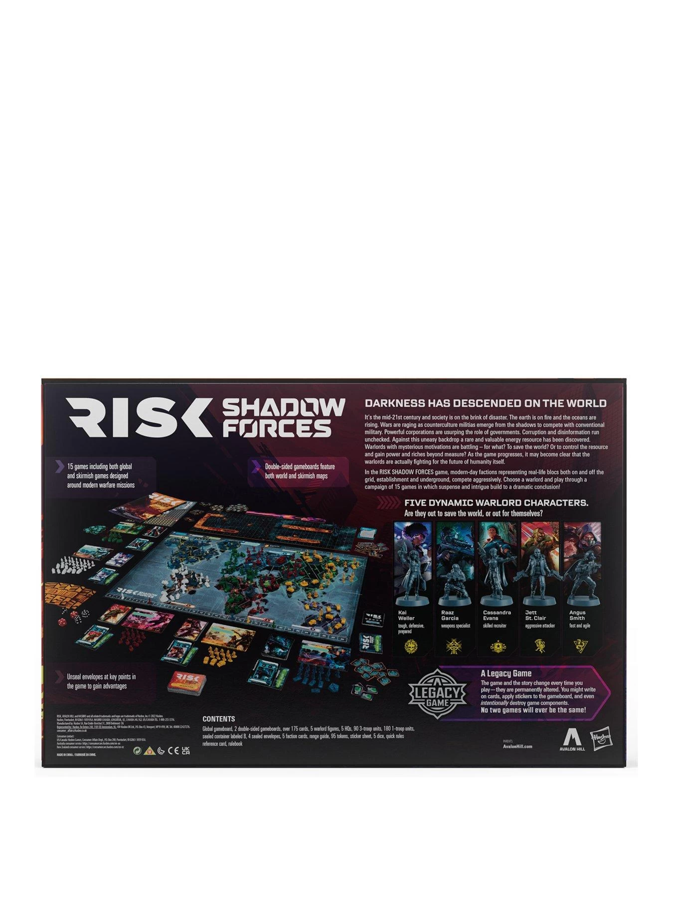 In the Risk Shadow Forces strategy board game, modern-day factions inspired by real-life blocs both on and off the grid, establishment and underground, compete aggressively.