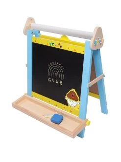 The New Wooden Hey Duggee Tabletop Easel is the perfect edition to a charming collection of Hey Duggee toys. Let your child get creative with Duggee and friends! One side has a chalkboard and other side is a whiteboard. This item is great for developing your childs motor skills. The Easel also includes; x1 plain colouring paper roll, 6 sheets of Duggee lined paper, x5 magnets, x1 eraser, x3 whiteboard pens, x3 chalk. Product dimensions are: H54.5 x W45 x D42cm. The Hey Duggee Wooden Tabletop Easel is made from responsibly sourced materials, the wooden products are certified by the FSC. Suitable for ages 3 years +.