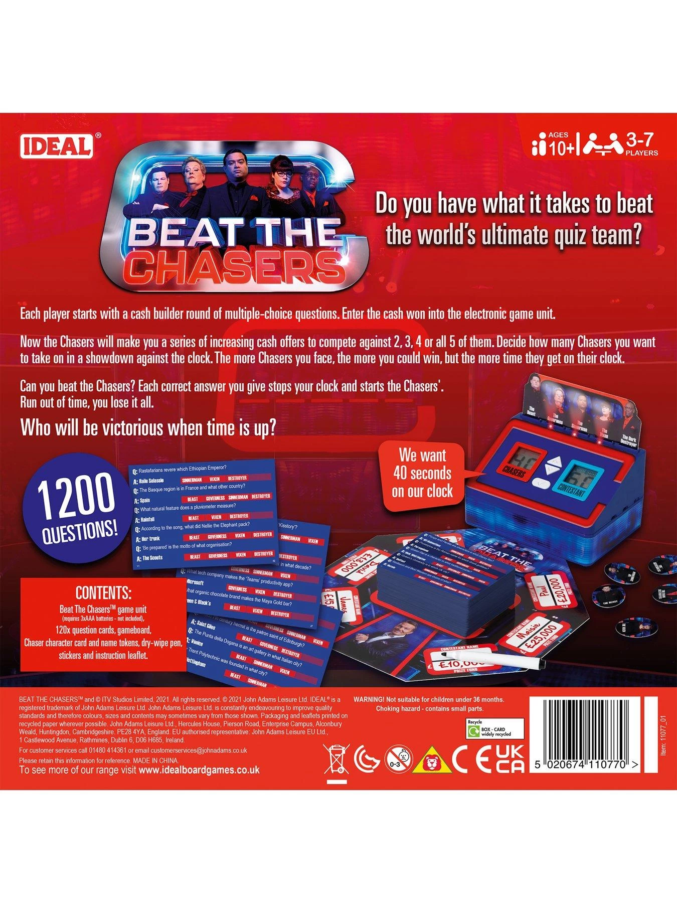 Find out who the real quiz champion in your family is, as you each start with a multiple-choice question cash builder round. Then, each player must decide how many Chasers they want to take on in a 60-second head to head showdown. Just like the show, the more Chasers you face, the more you could win, but the more time they get on their clock! Each correct answer you give stops your clock and starts the Chasers’. Who will be victorious when time is up? This game is for 3-7 players aged 10+, making it perfect for family game nights or parties with friends.