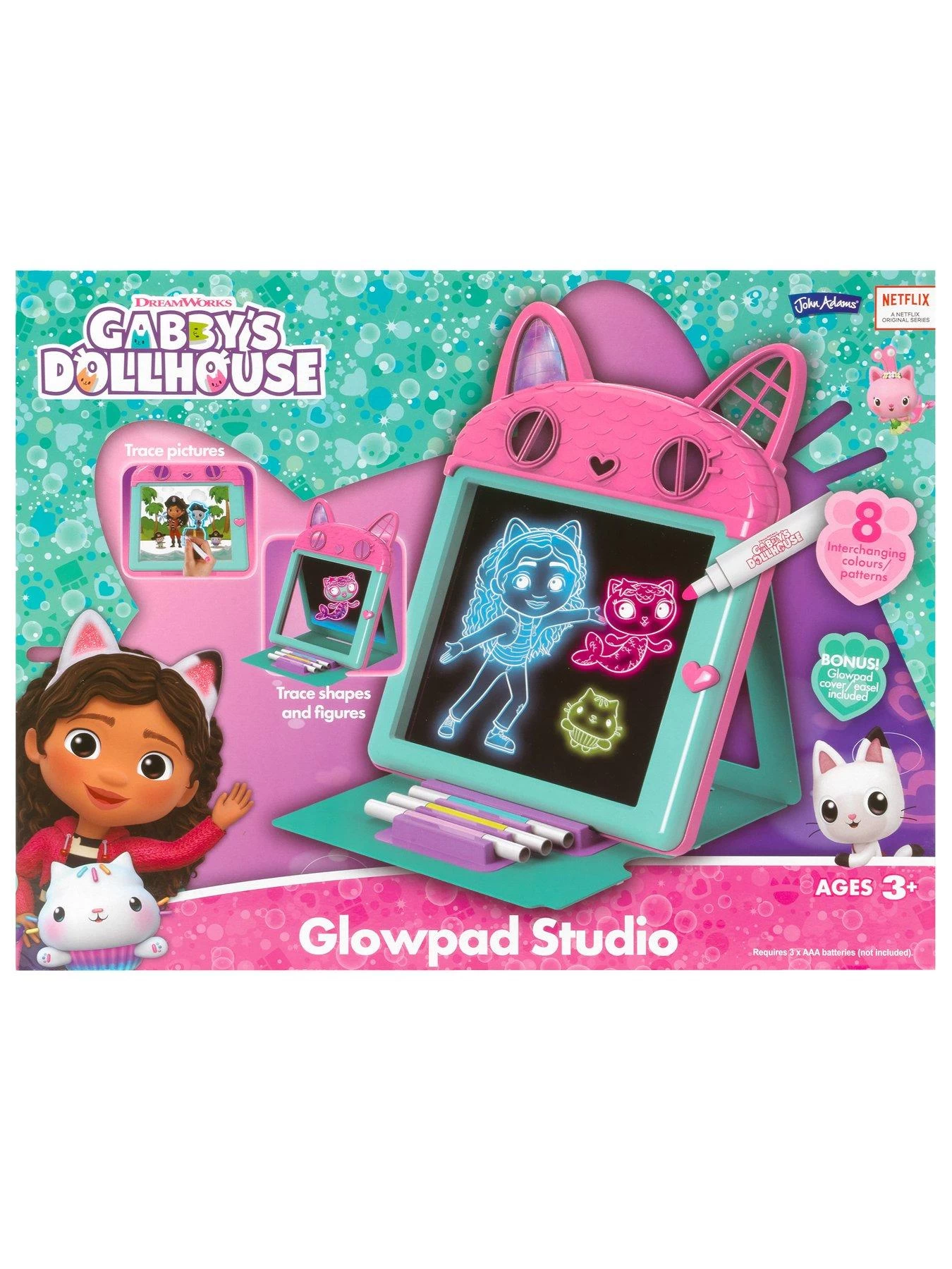 Your little artist can trace, copy or design their own amazing pictures with Gabby’s Dollhouse GLOWPAD 3-in-1 Studio!
