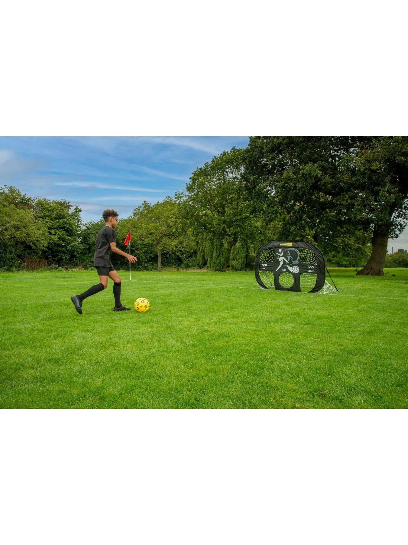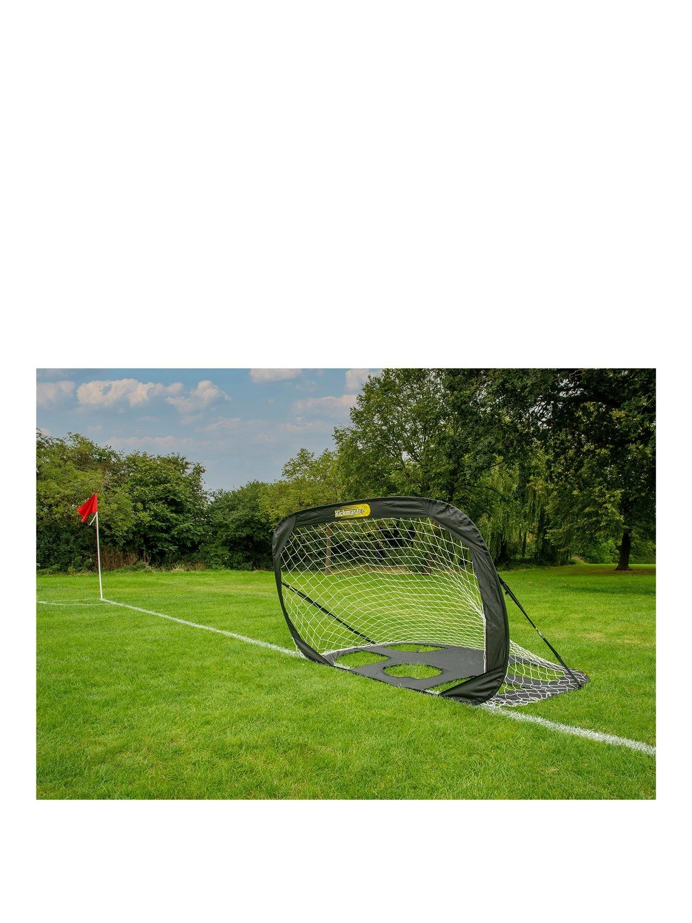 The Kickmaster range of football products is not only perfect for encouraging children to get outside and active but is ideal for honing skills at an early age for any budding players! The Kickmaster Pop-Up Goals and Target Shots are a 2-in-1 product which allows players to switch modes in seconds! On one side, there’s a standard goal, perfect for practicing those free kicks and penalties whilst on the other is a target shot ideal for simply perfecting your aim or turn it in to a scoring game with friends or teammates with the printed scoring system! Ground pegs are included for windy days and extra security when firing shots. The pop-up design allows for the product to be ready for use in seconds and folded down just as quickly and it can be simply flipped over for mode change. It comes with a durable carry case for easy storage and transportation so that it can be taken from garden, to park, beach, pretty much anywhere!