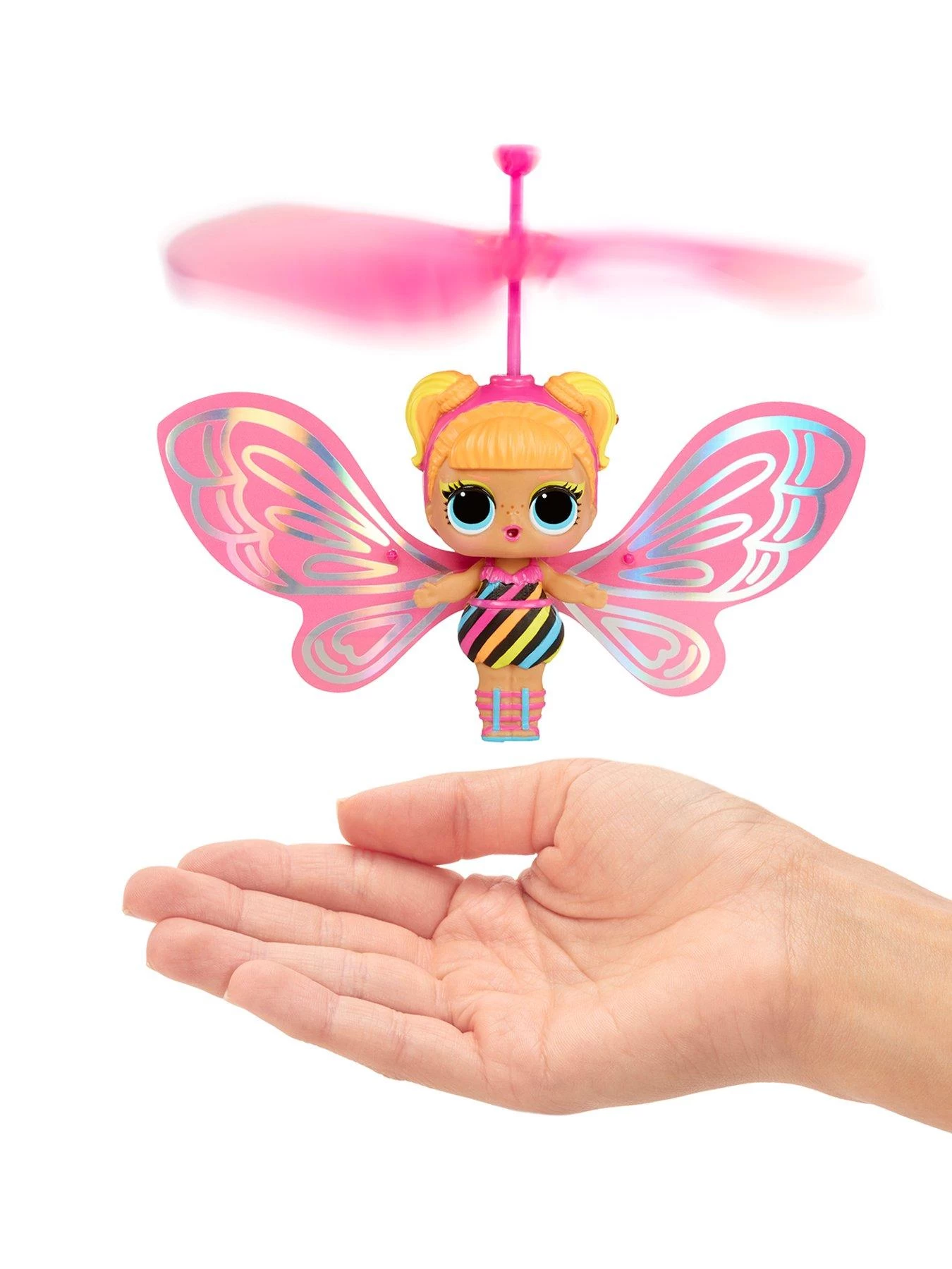 Meet 3 new LOL Tots with fashion wings who really fly! Each L.O.L. Surprise Magic Flyer doll comes in a unique plastic bottle that comes to life when you touch or rub it. Touch the bottle once and it shakes, touch it twice and it lights up in an amazing rainbow, touch it 3 times and the bottle magically opens …then pull the lid back and your magic flying Tot flies into the air!