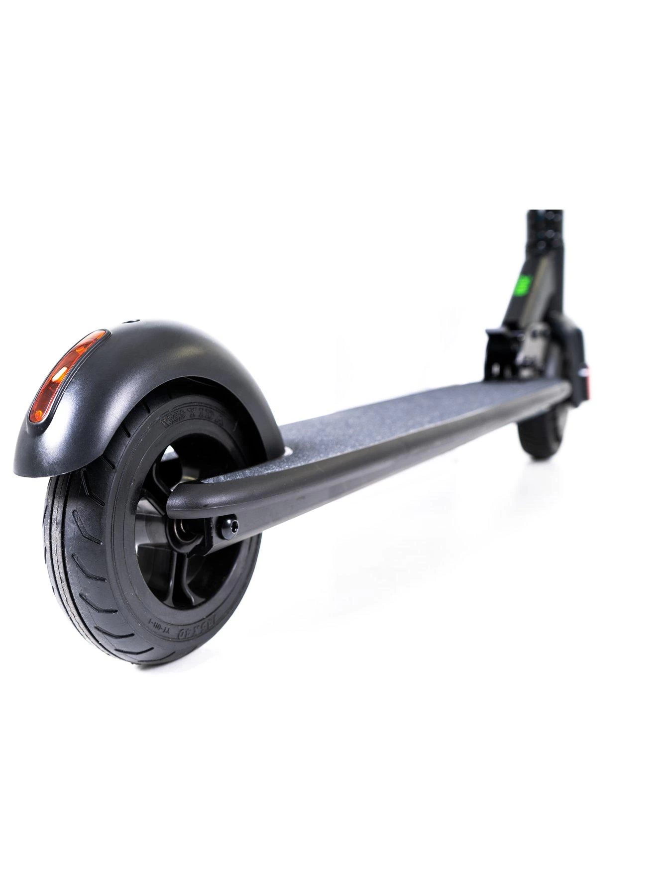 There are no inconvenient punctures thanks to 6′ grippy solid rubber tyres. This electric scooter is also fitted with grip tape style deck, mudguards and a kickstand for maximum convenience.