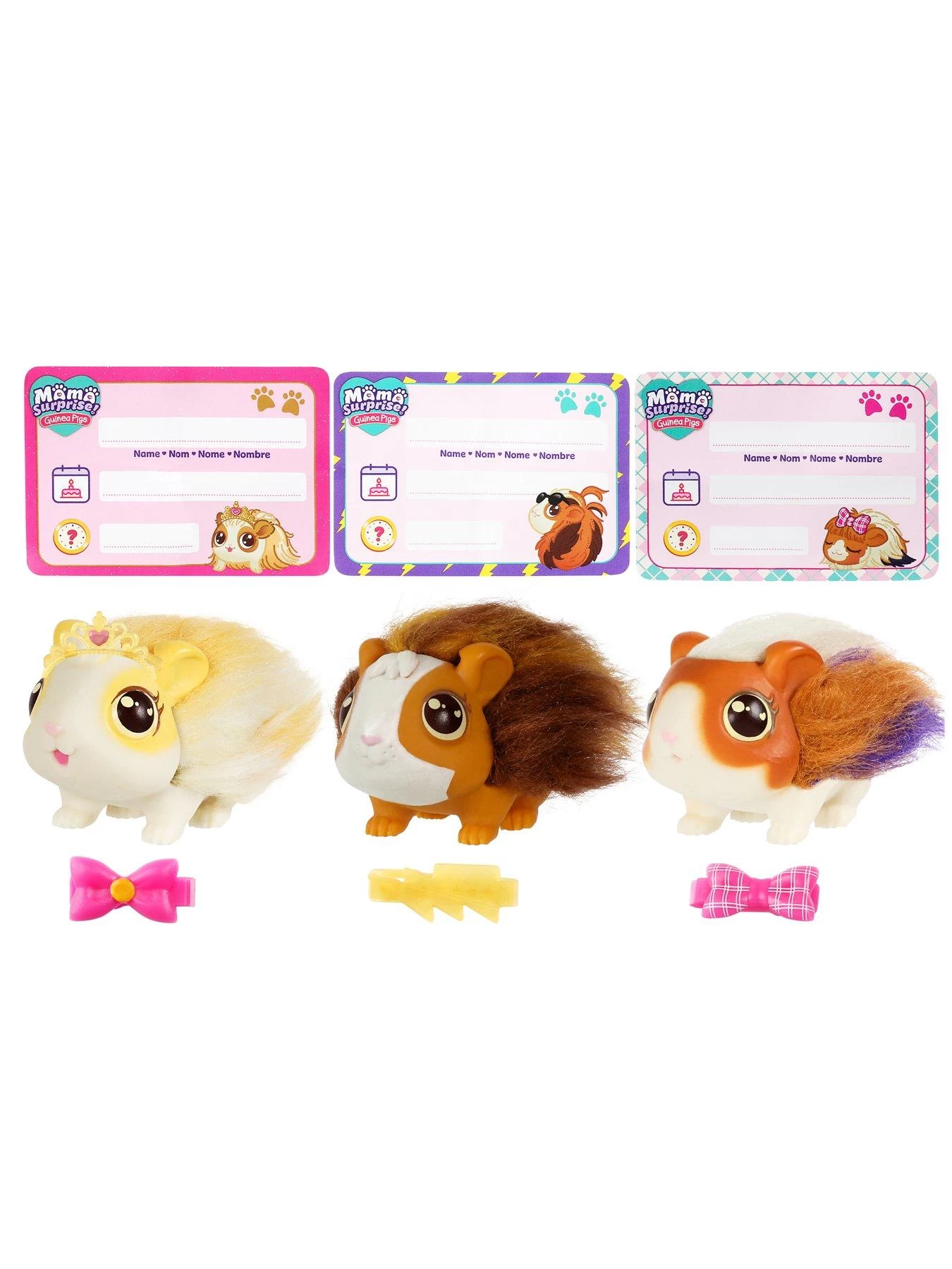 Mama Surprise takes caring for your pet to a whole new level. This soft, interactive Mama guinea pig comes with a deluxe, interactive hutch. Care for Mama by feeding her and brushing her long, beautiful hair with the accessories provided.