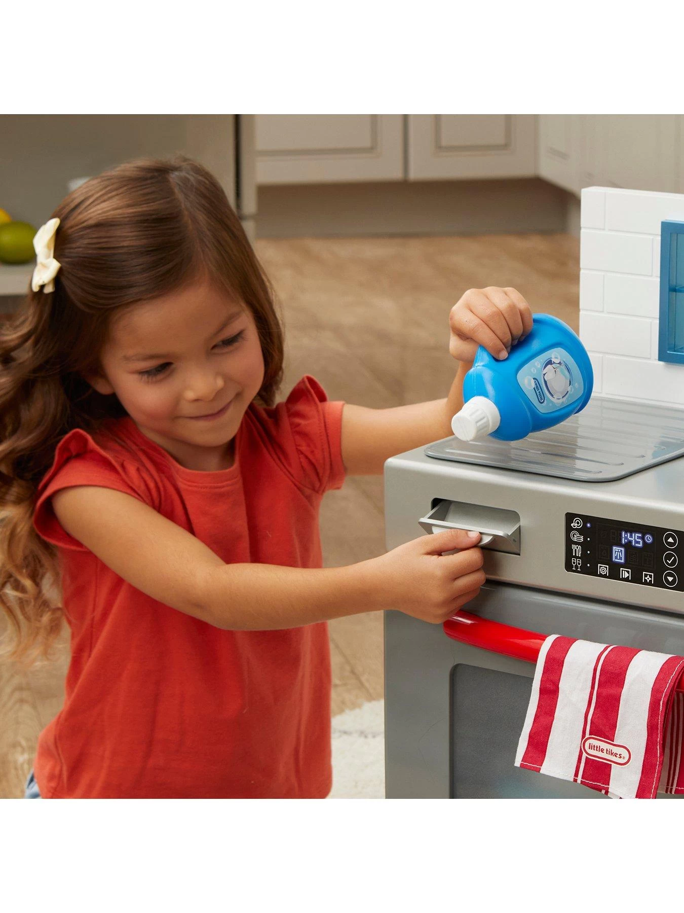Kids can pretend to do the dishes just like their parents with the super realistic Little Tikes First Dishwasher. This sleek, modern, pretend play dishwasher is packed with interactive features: a working door, a sliding detergent drawer, removable dish racks and a drying mat. Plus, it includes realistic lights and sounds. The knob clicks as it turns, and kids can activate the washing light effects on the door. Pretending to do the dishes and other chores helps kids gain a sense of responsibility, an important part of social-emotional learning.