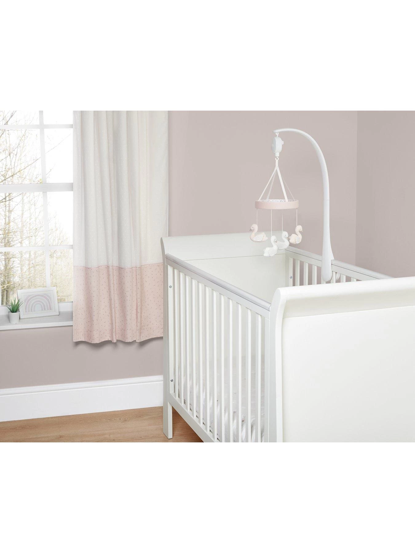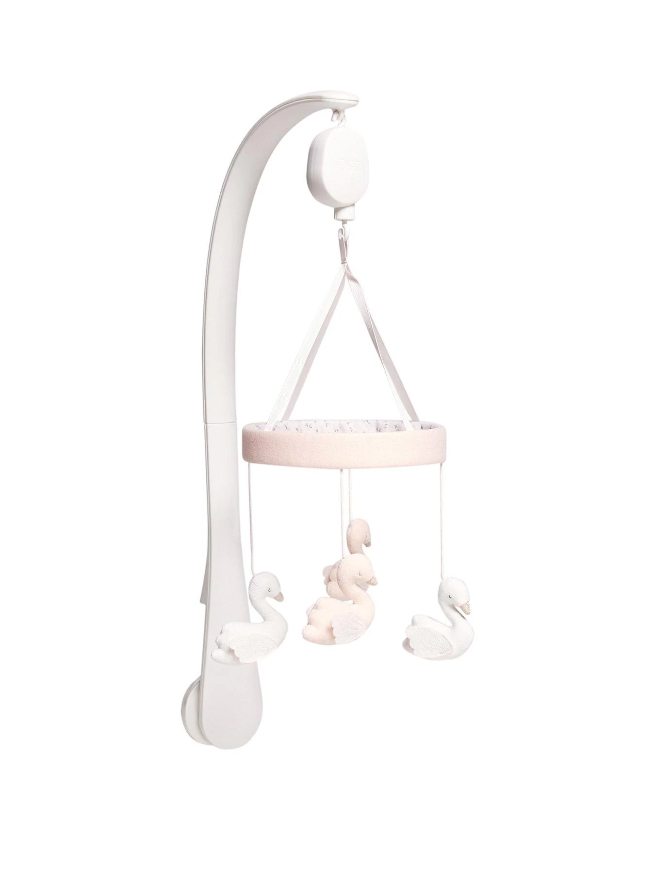 Soothe your little into a sound sleep with this soft mobile. Finished with soft cotton swans and a lovely pink print, it will look the part with the rest of the Welcome to the World floral interiors. And thanks to the gentle wind-up music, your baby will be snoozing in no time.