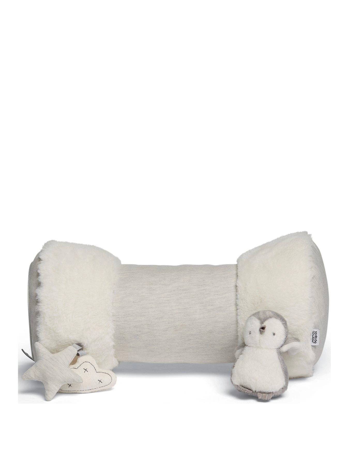 The soft tube shape is perfect for propping baby up on their arms, to encourage them to move their head. Full of exciting noises and textures; crinkles, rattles and squeaks, it also features an adorable penguin character, a mirror so baby can see themselves, and a variety of super soft faux-fur fabrics for little hands to feel and touch.
