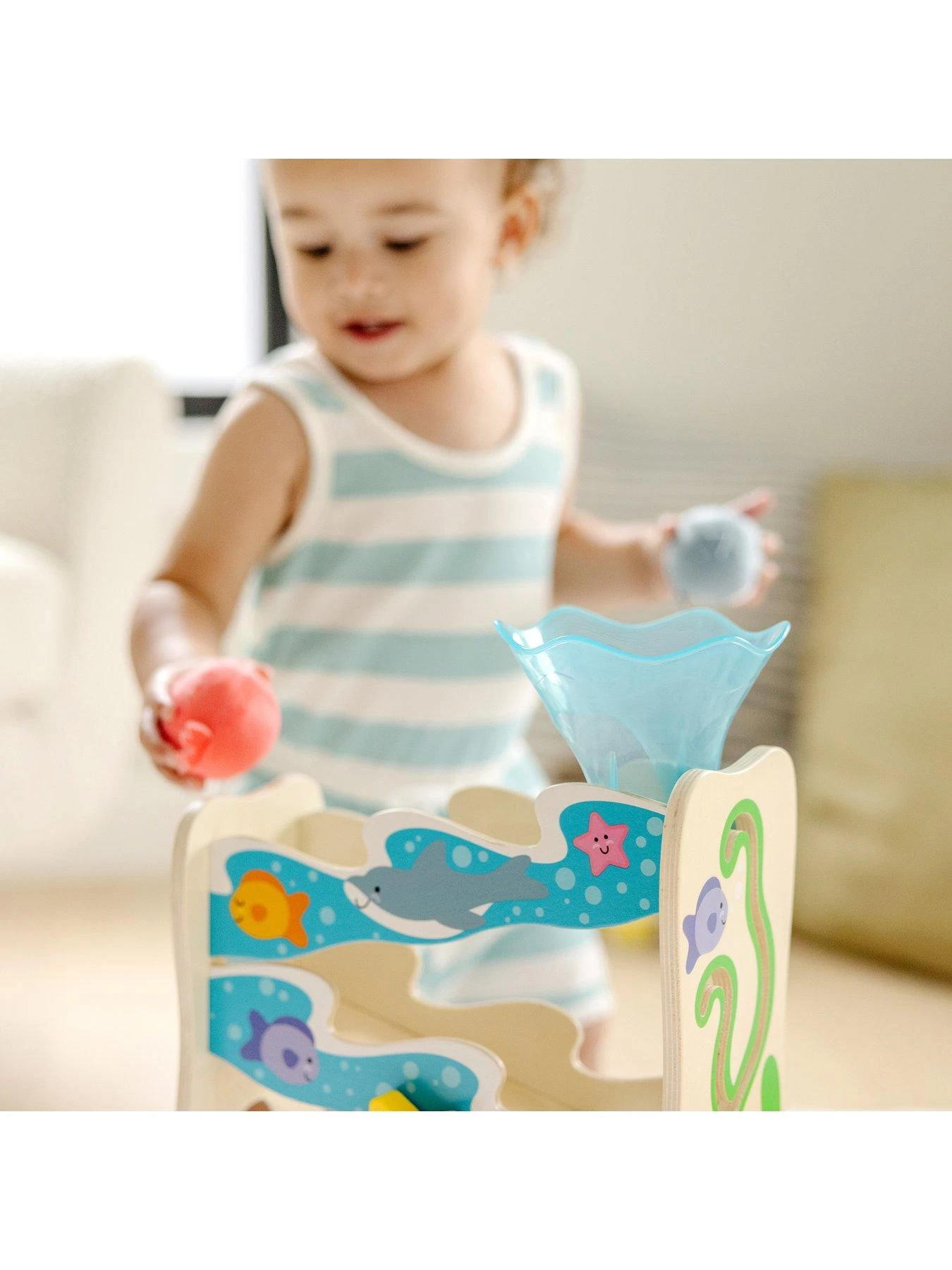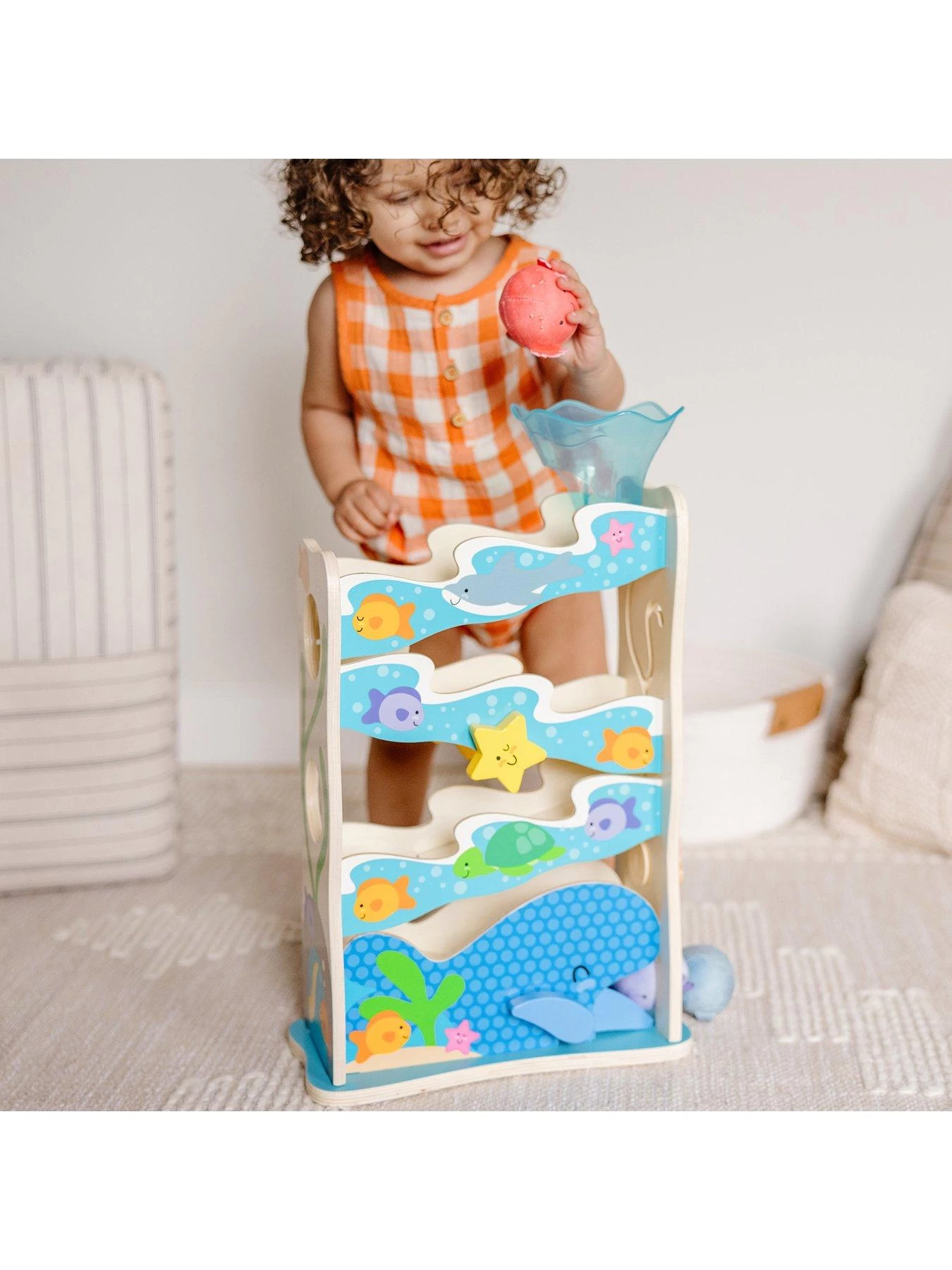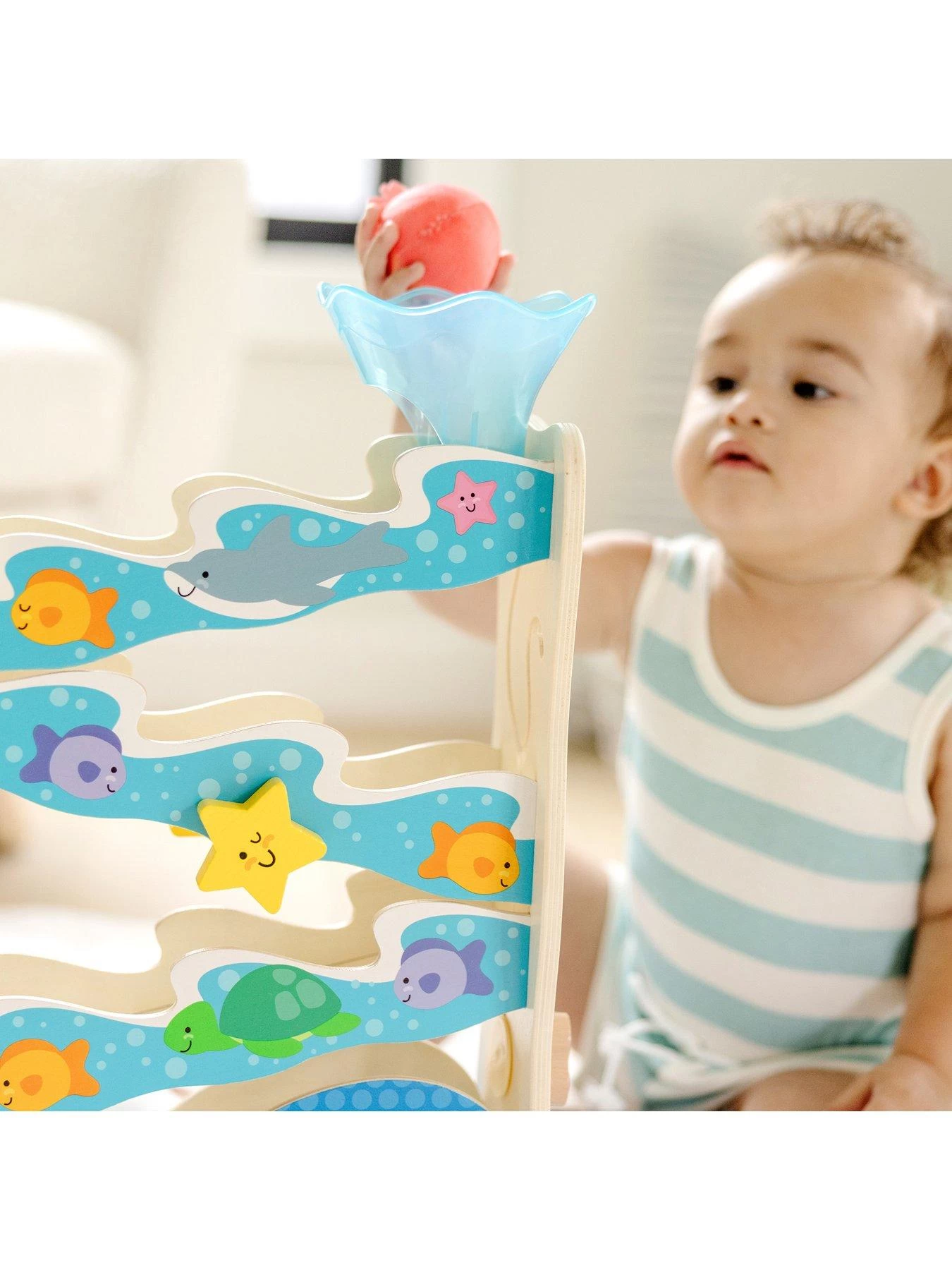 Get playtime and developmental skills rolling with the Rollables Ocean Slide from Melissa & Doug.
