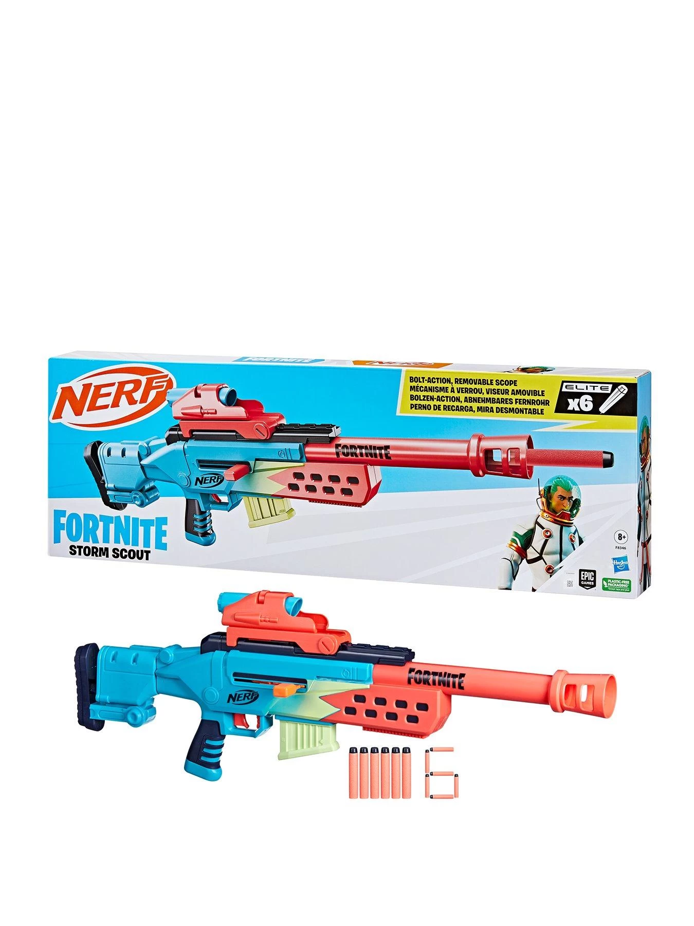 - NERF FORTNITE STORM SCOUT BLASTER: this Nerf Fortnite blaster is inspired by the equipment used in Fortnite.
