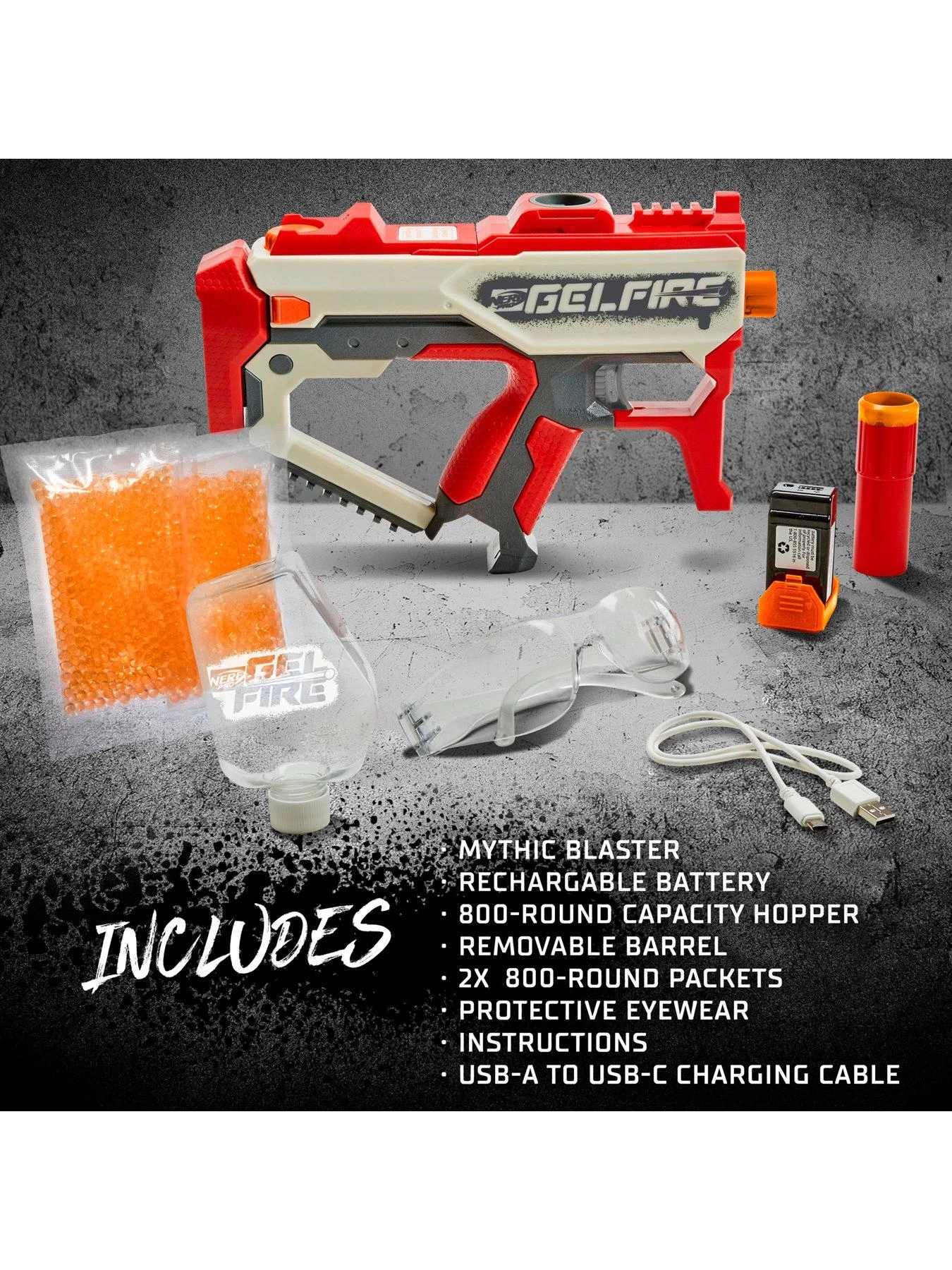 - NERF PRO GELFIRE FULLY AUTOMATIC MYTHIC BLASTER: the blaster includes a high-capacity 800-round quick-swap hopper, full-auto and semi-auto modes