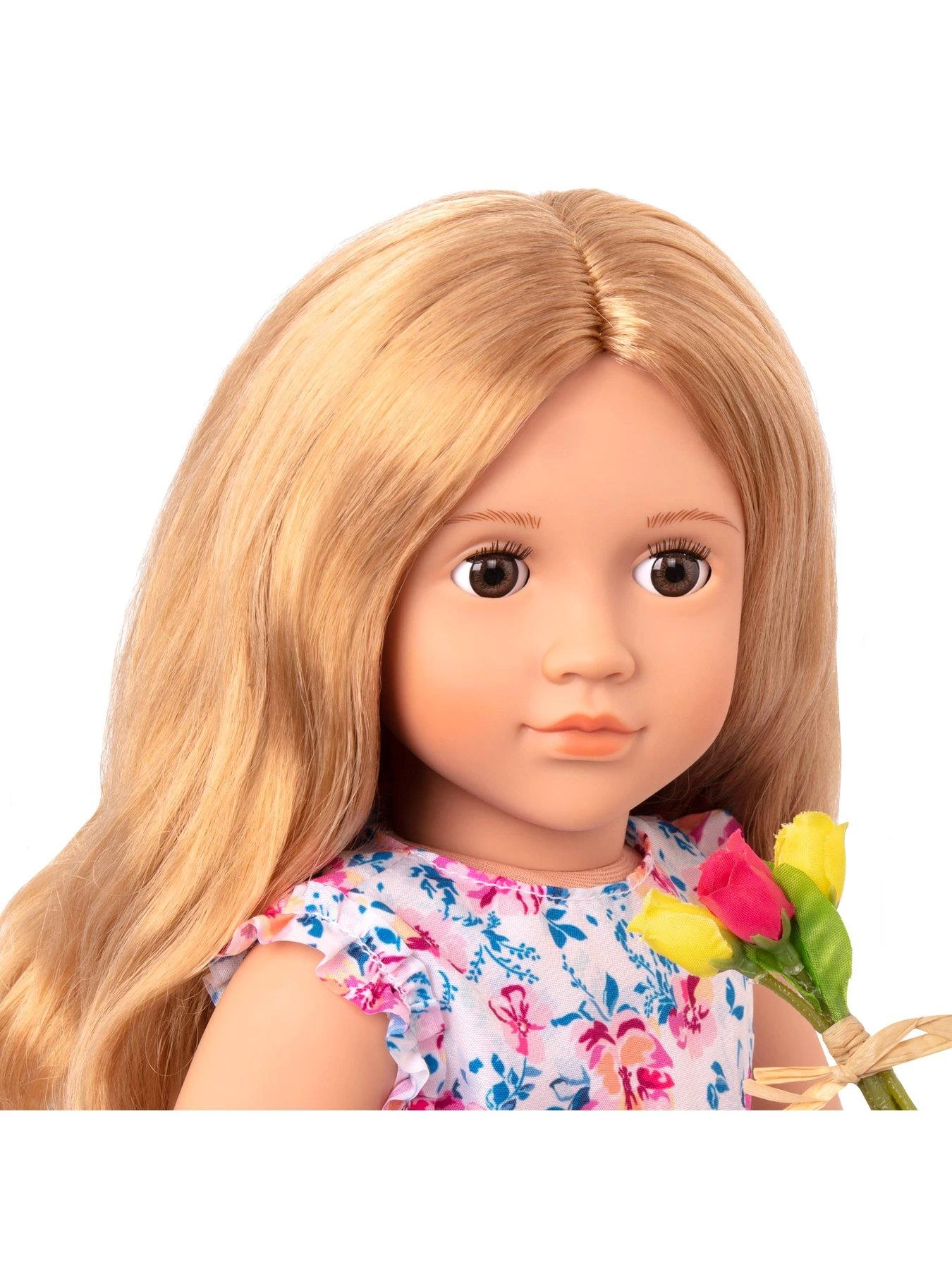 Spend time in the sweetest garden with Sage! This Our Generation 18-inch doll has lovely dark-brown eyes that open and close, while her beautiful long blonde hair is fun to brush and style!