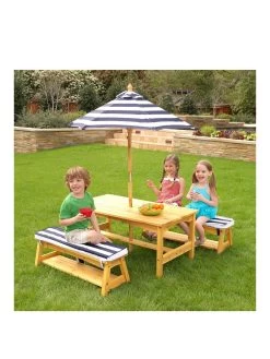 Kidkraft Outdoor Picnic Table & Bench Set With Cushions & Umbrella
