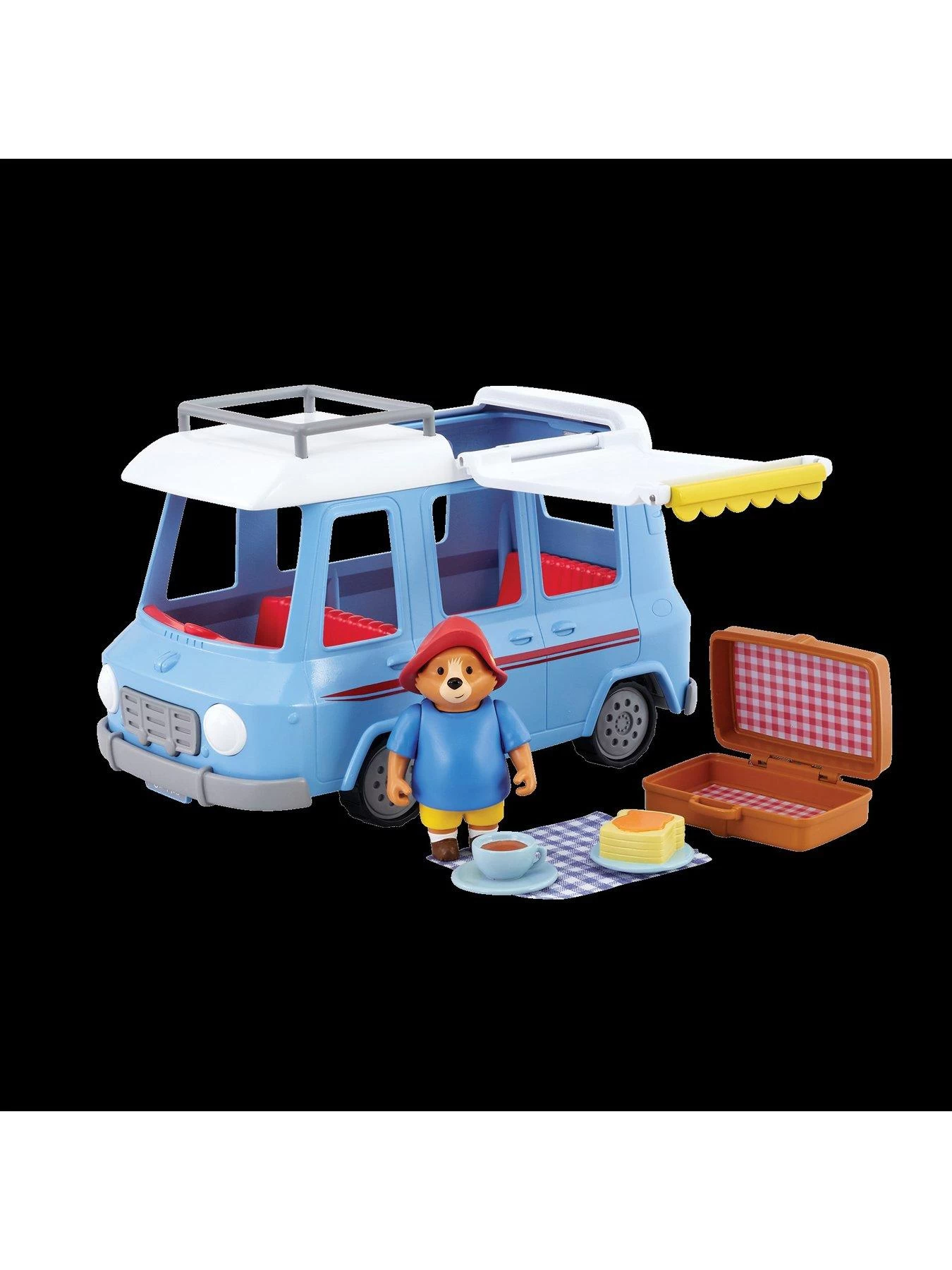 Vroom Vroom! It’s time to take Paddington on an adventure in Bessie the Campervan from the award-winning Adventures of Paddington TV series! There’s plenty of space inside the fun-packed Campervan for Paddington and any of his friends that want to come along for a picnic. Remove the roof to see and play inside the camper, and when it’s time for refreshments, fold out the canopy and open Paddington’s suitcase to reveal a cup of tea and marmalade sandwiches! Press Bessie’s grill to hear a ‘Beep Beep’ and a ‘Broom Broom’, Paddington’s voice and fun music from the TV show. Pack everyone up and into Bessie and then push her around to take everyone on an adventure – Beep Beep! This campervan playset is full of fun and activity to inspire imaginative play. Suitable for little Paddington fans age 3 years and over.