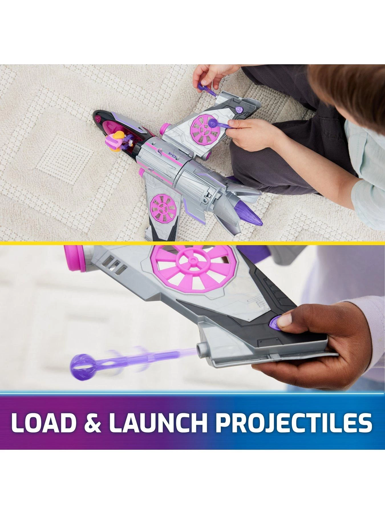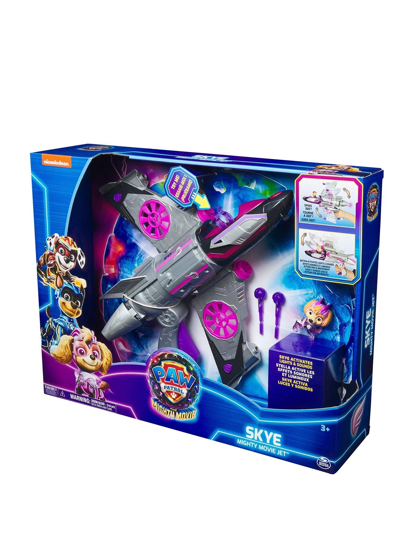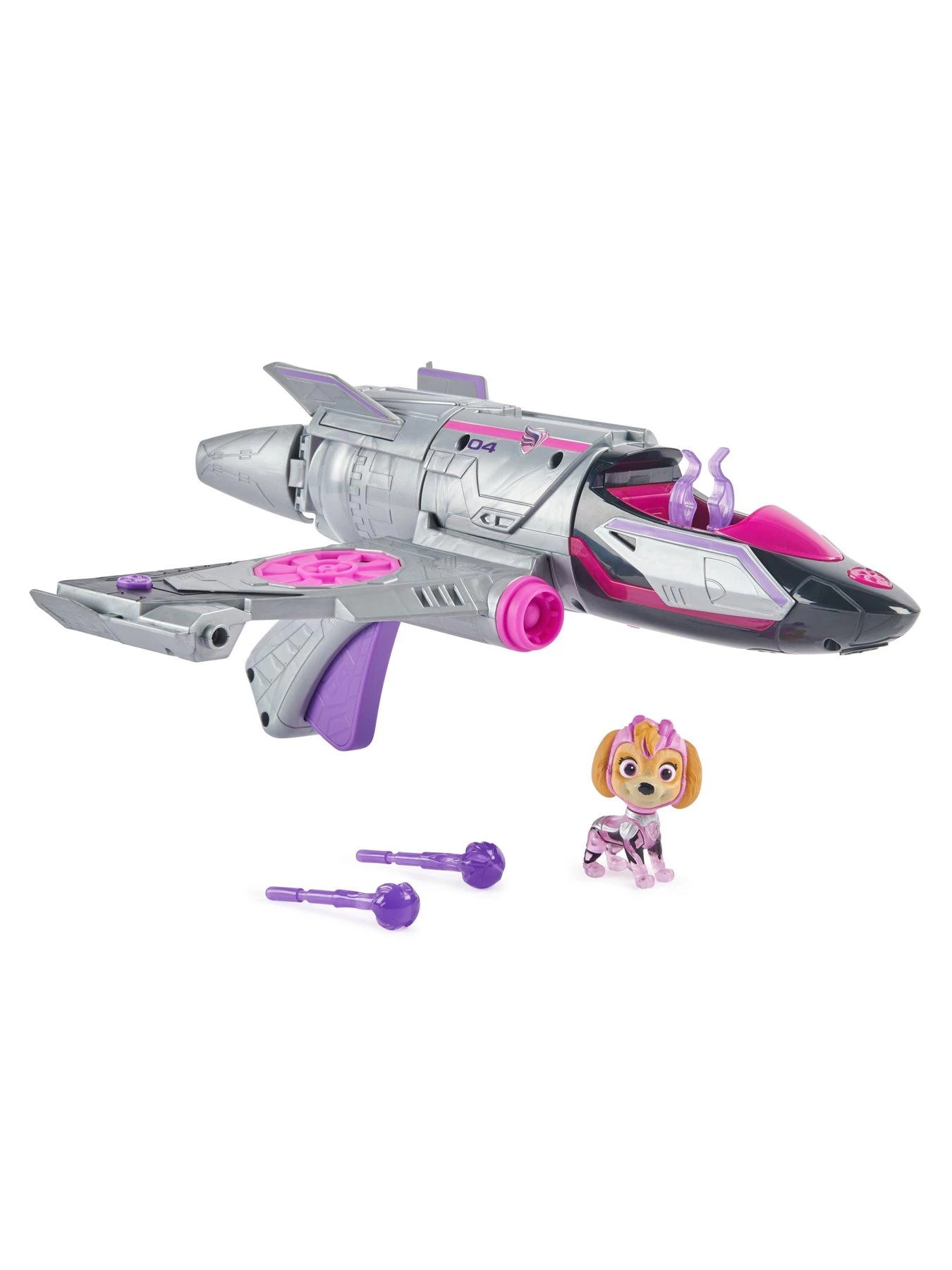 Team up with Skye and her PAW Patrol: The Mighty Movie rescue jet, for exciting rescue adventures right off the big screen! This PAW Patrol toy airplane measures over 15-inches long and over 14-inches wide, with a super-sleek design, an exciting vehicle activation and two projectile launchers, along with exciting sound effects and music, with synchronized flashing lights, that you see and hear in the movie! This deluxe Mighty Pups themed fighter jet toy would make a great gift for kids that are fans of the PAW Patrol Movie (Batteries Included)! Dressed in her pink PAW Patrol: The Mighty Movie uniform, with translucent sections and a cool helmet, clip your Skye action figure into the cockpit of her airplane toy, to illuminate multiple areas on Skye’s body and her jet plane, watch her paws light up, hear music and sound effects!