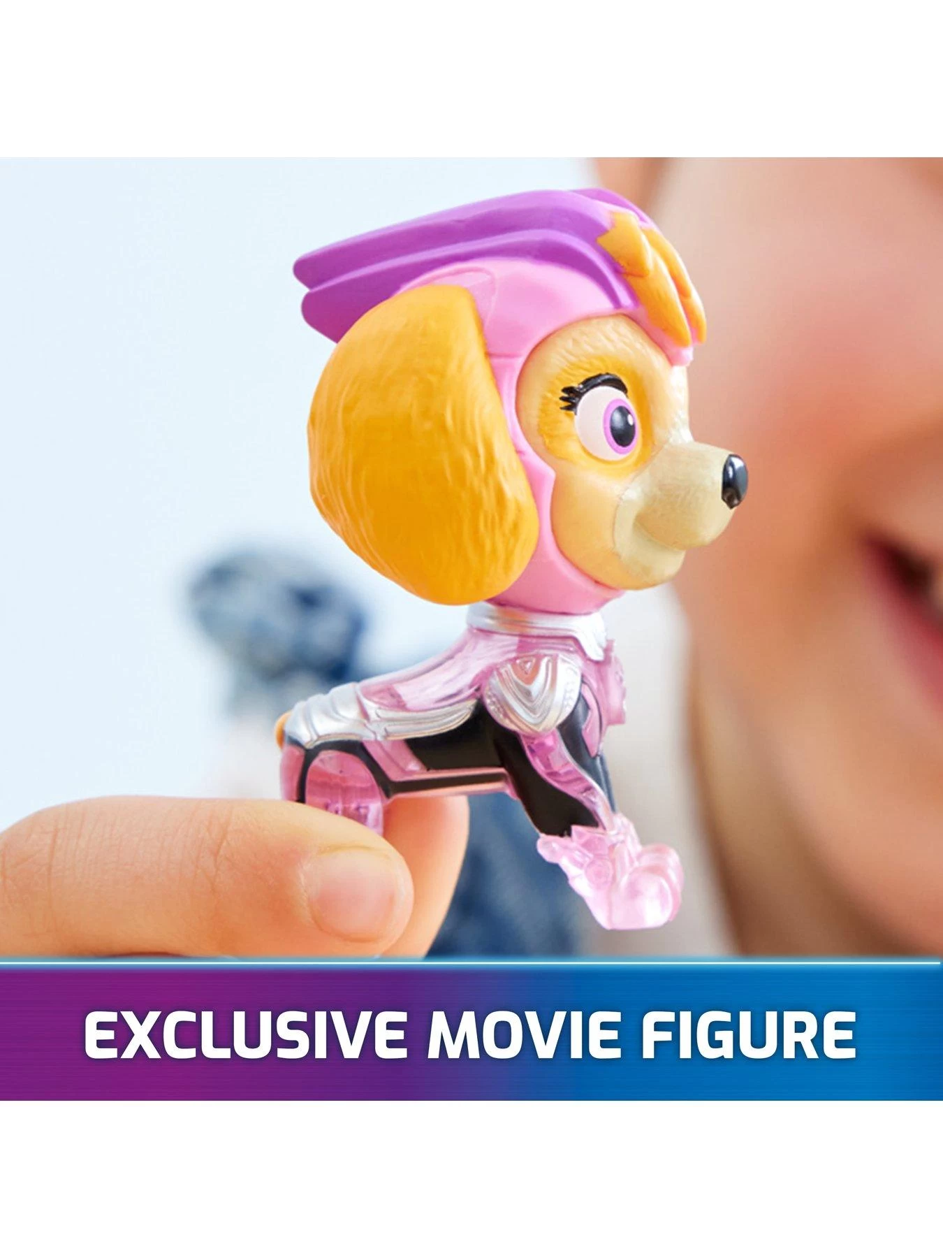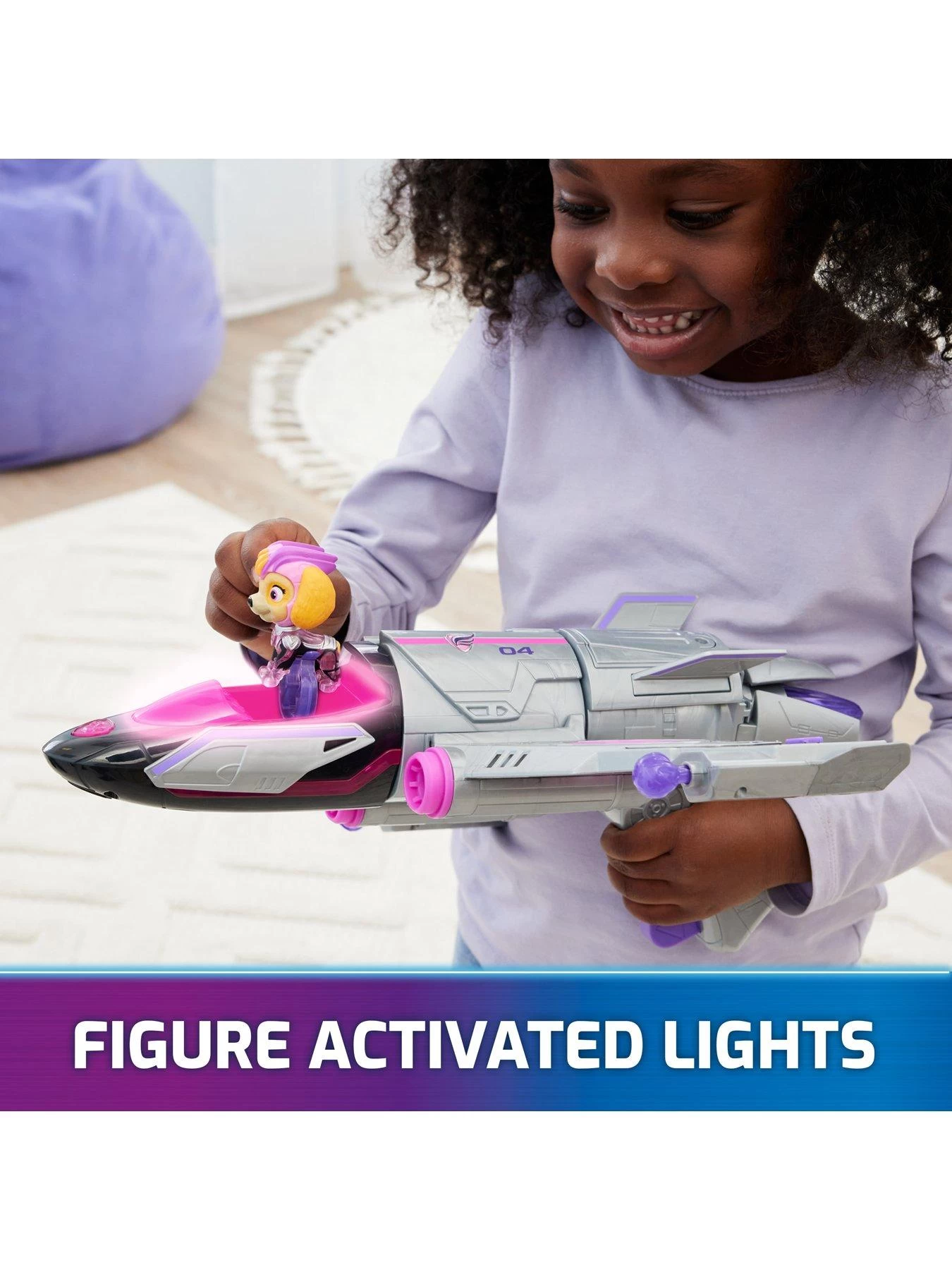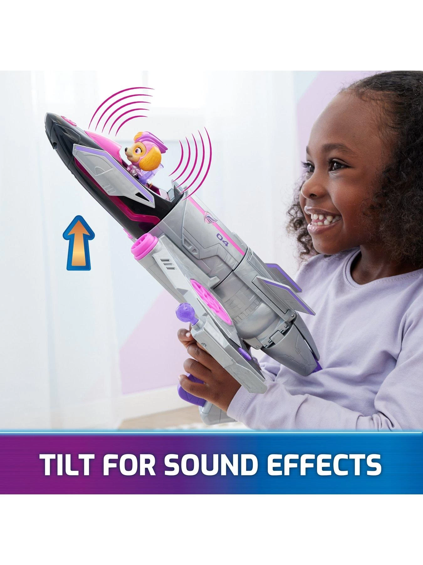 Team up with Skye and her PAW Patrol: The Mighty Movie rescue jet, for exciting rescue adventures right off the big screen! This PAW Patrol toy airplane measures over 15-inches long and over 14-inches wide, with a super-sleek design, an exciting vehicle activation and two projectile launchers, along with exciting sound effects and music, with synchronized flashing lights, that you see and hear in the movie! This deluxe Mighty Pups themed fighter jet toy would make a great gift for kids that are fans of the PAW Patrol Movie (Batteries Included)! Dressed in her pink PAW Patrol: The Mighty Movie uniform, with translucent sections and a cool helmet, clip your Skye action figure into the cockpit of her airplane toy, to illuminate multiple areas on Skye’s body and her jet plane, watch her paws light up, hear music and sound effects!
