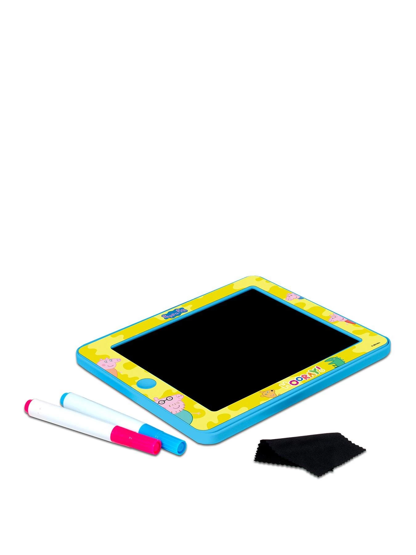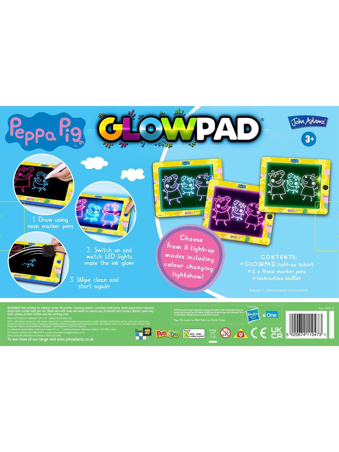 Draw onto your GLOWPAD using the 2 neon marker pens to create your favourite Peppa Pig characters! Press the button to see your pictures glow and transform! With 8 light settings includin a colour changing light show. When you’re finished, wipe clean and start again.