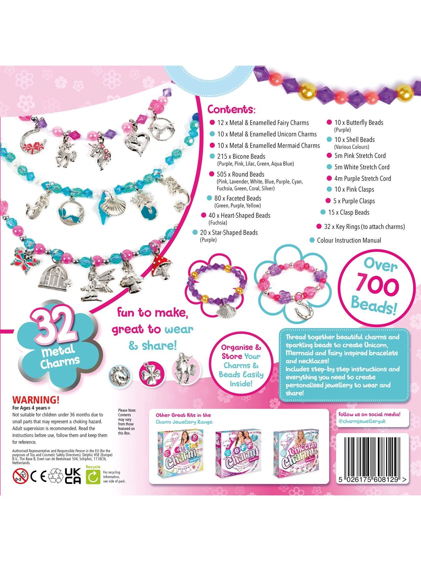 Thread together beautiful charms and colourful beads to create over 30 Unicorn, Mermaid and Fairy inspired bracelets and necklaces! Includes step-by-step instructions and everything you need to create personalised jewellery – a storage box, 32 metal & enamelled charms and over 800 beads in various shapes, sizes and colours!