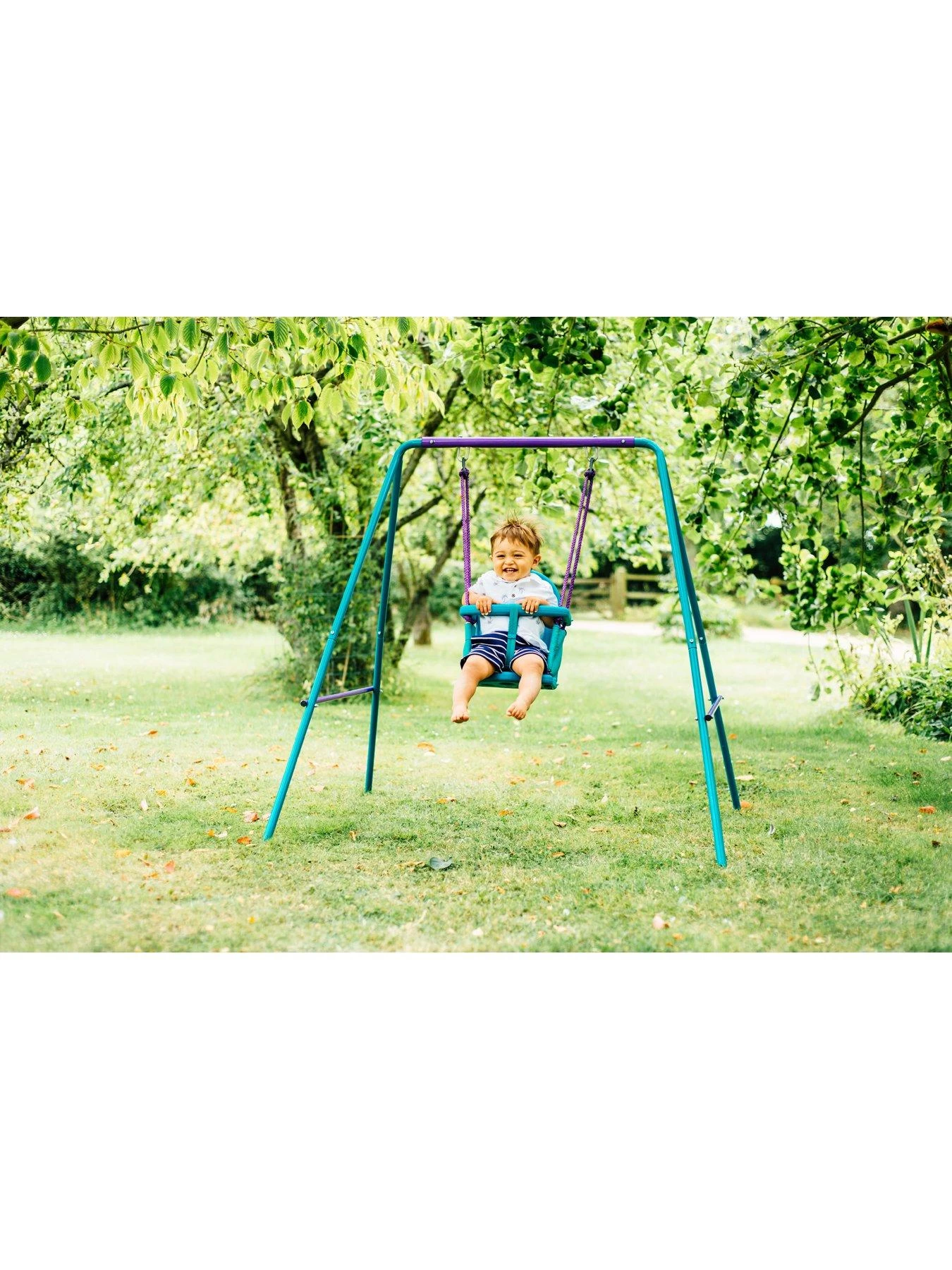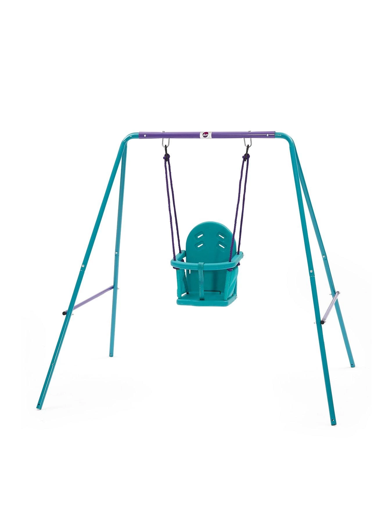 The steel frame extends quickly and easily from a baby set to a full height swing and can be converted back again.
