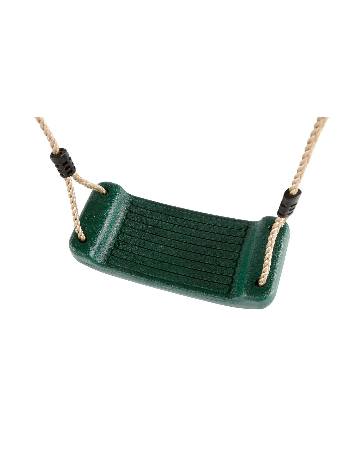 - Swing set uses soft feel ropes and heavy duty blow moulded seat for extra strength