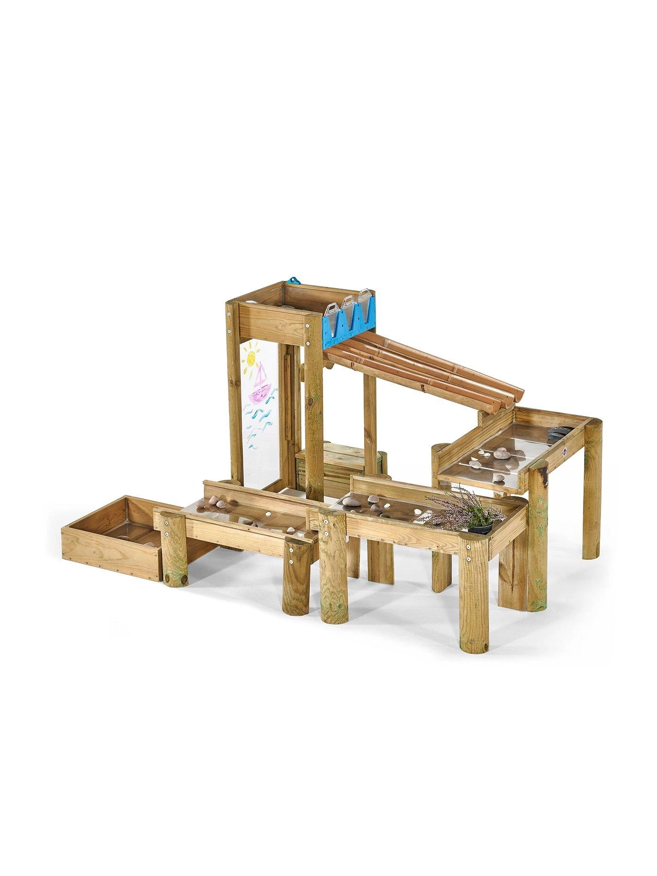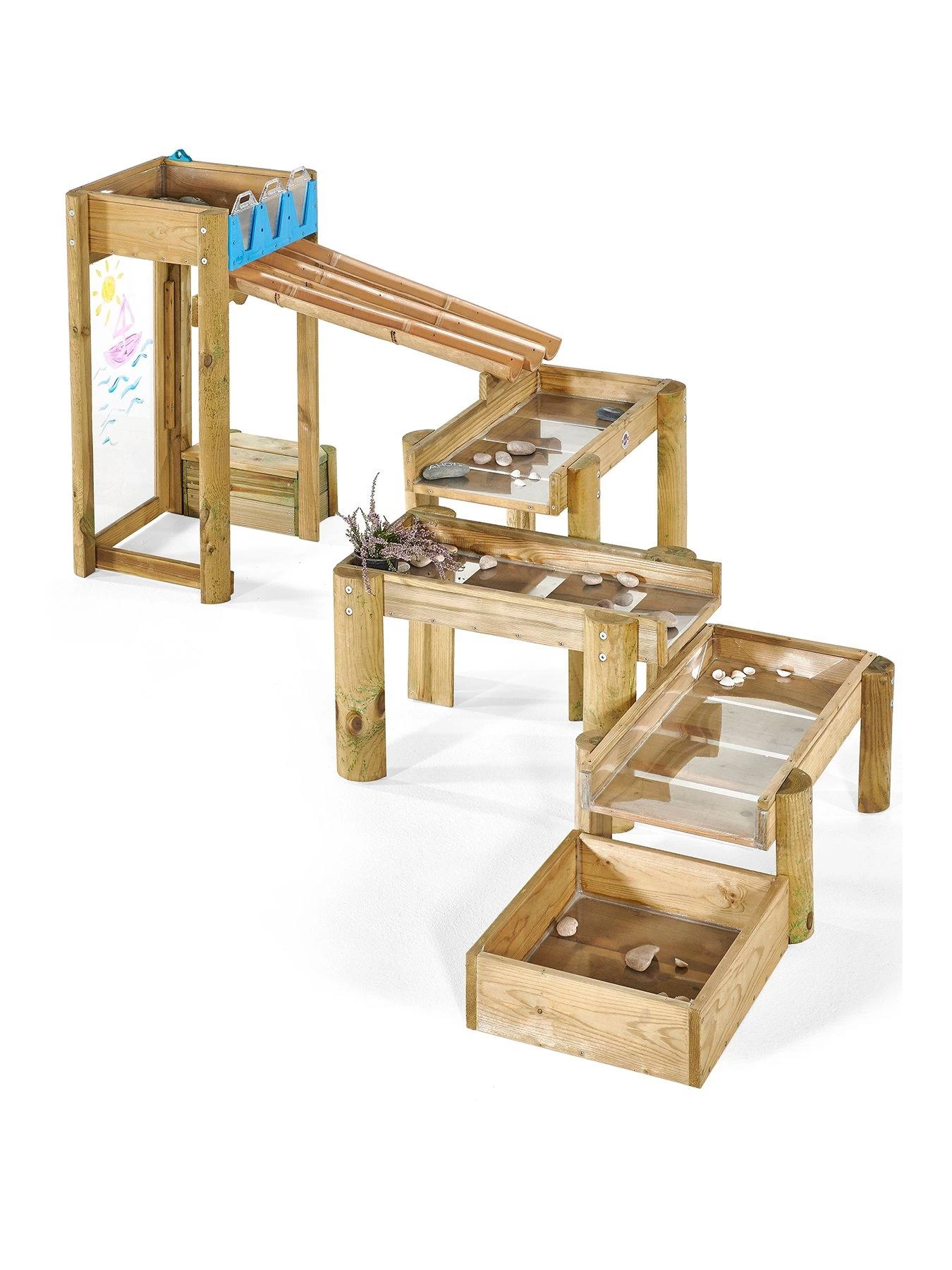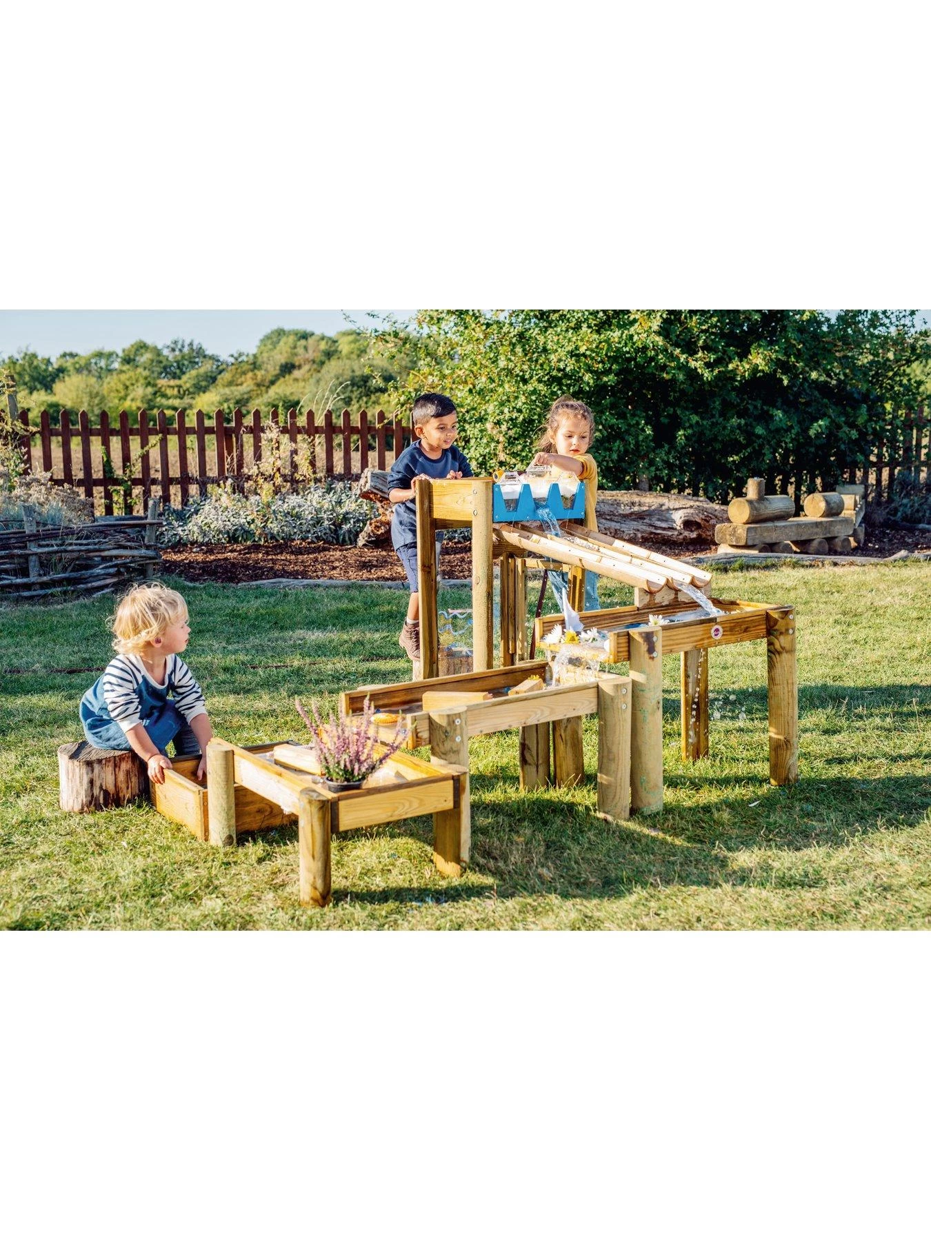 Made from FSC certified sustainably sourced wood, children can engage in STEAM play with the Plum Discovery Forest Water Run. 3 levels and 5 individual wooden reservoirs create the run. A hosepipe attachment sits at the top to ensure constant water flow. From there kids can work the 3-way racing gates, which can be operated to different heights to regulate flow. Watch as the water flood the natural bamboo racing chutes into the below reservoirs, then being the race all over again!