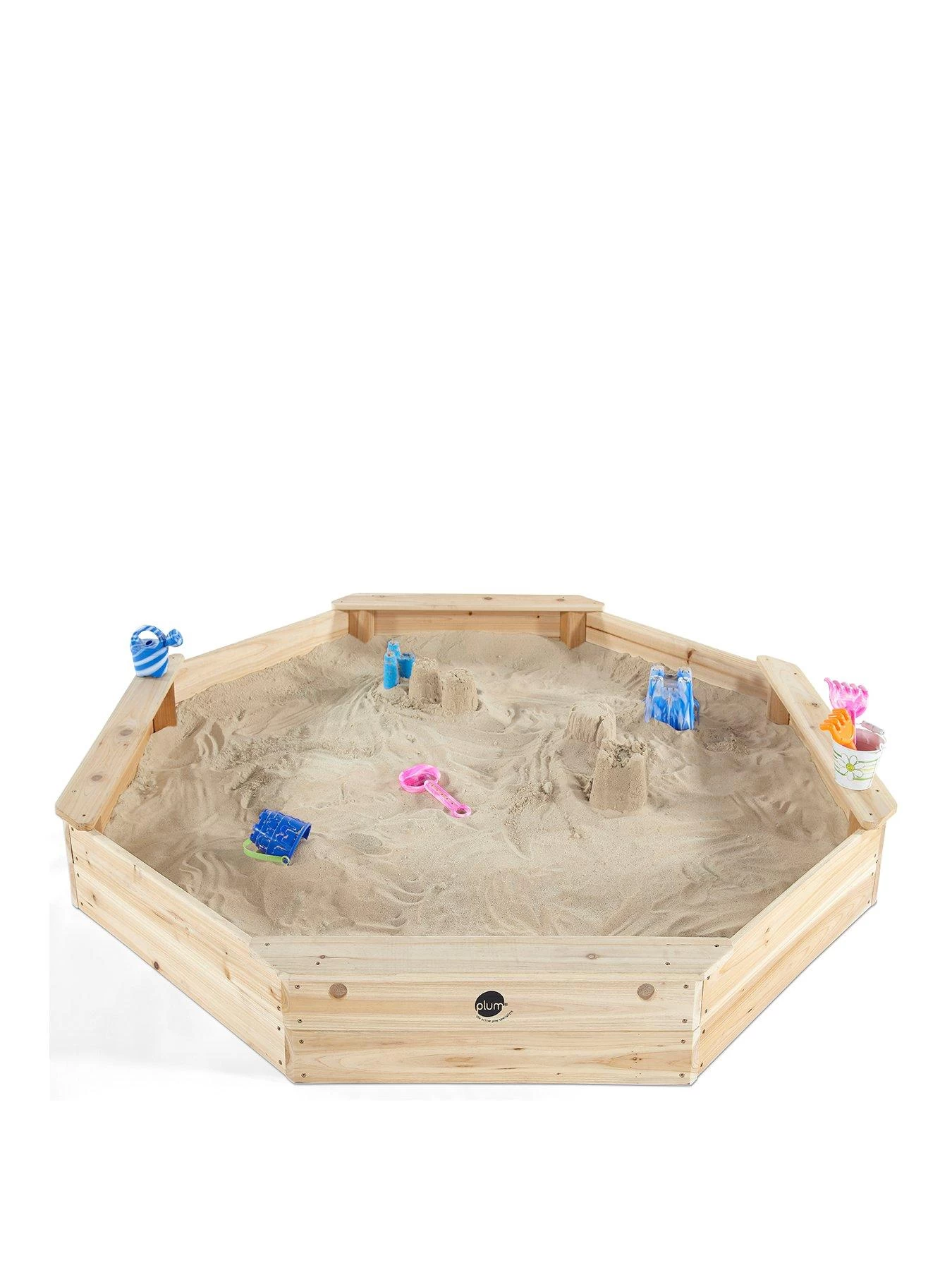 Bring the beach to your garden with the Giant Wooden Sand Pit by Plum. Made from FSC certified sustainably sourced timber and pressure treated for longevity and durability. The sand pit has rounded edges for added safety. Easy to assemble and is supplied with a protective cover and groundsheet. The internal textile ground cover prevents weeds from growing through and allows water to drain out of your sandbox.