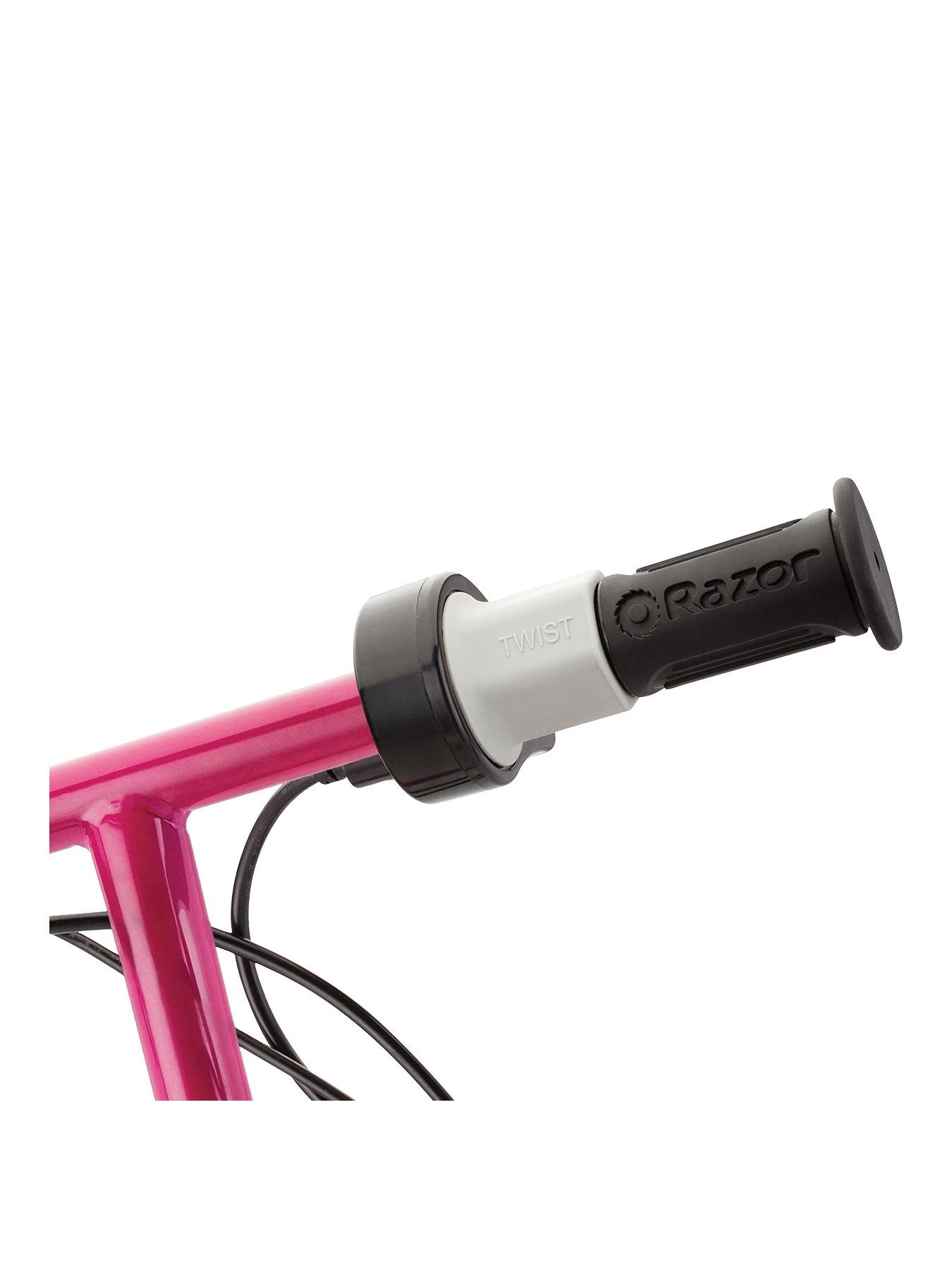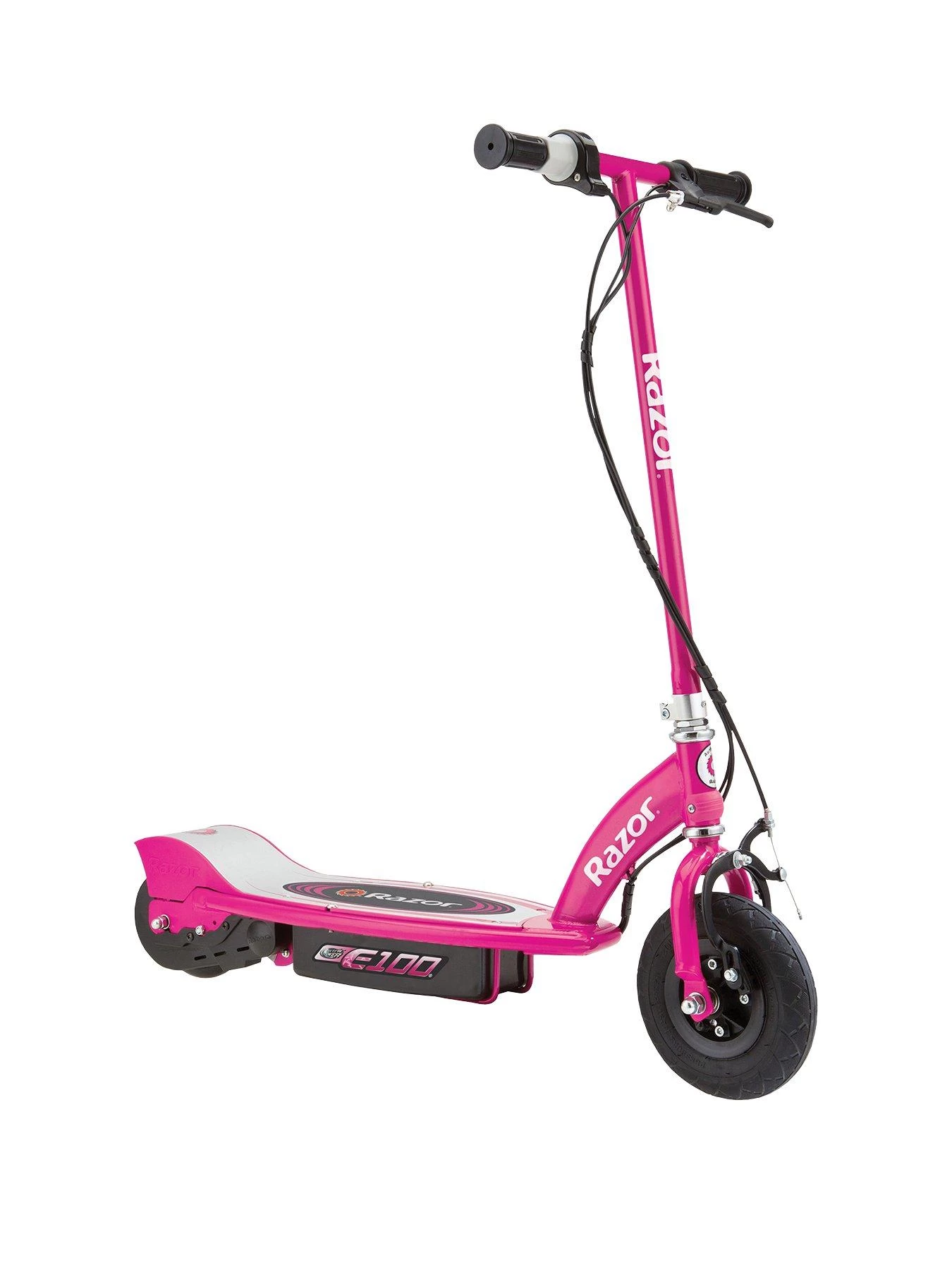 The Razor E100 electric scooter is the perfect introduction to the world of electric-powered fun. Designed to help riders ages 8 and up ease into their first motorized ride, the E100 pairs a kid-sized frame with intuitive, twist grip throttle and brake controls and a 100-watt motor -just enough speed to thrill young riders.