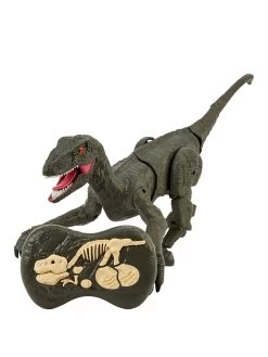 Remote Control Dinosaur, Velociraptor. Realistic walking movement with wagging tail, light and roaring sound. Rechargeable battery included.