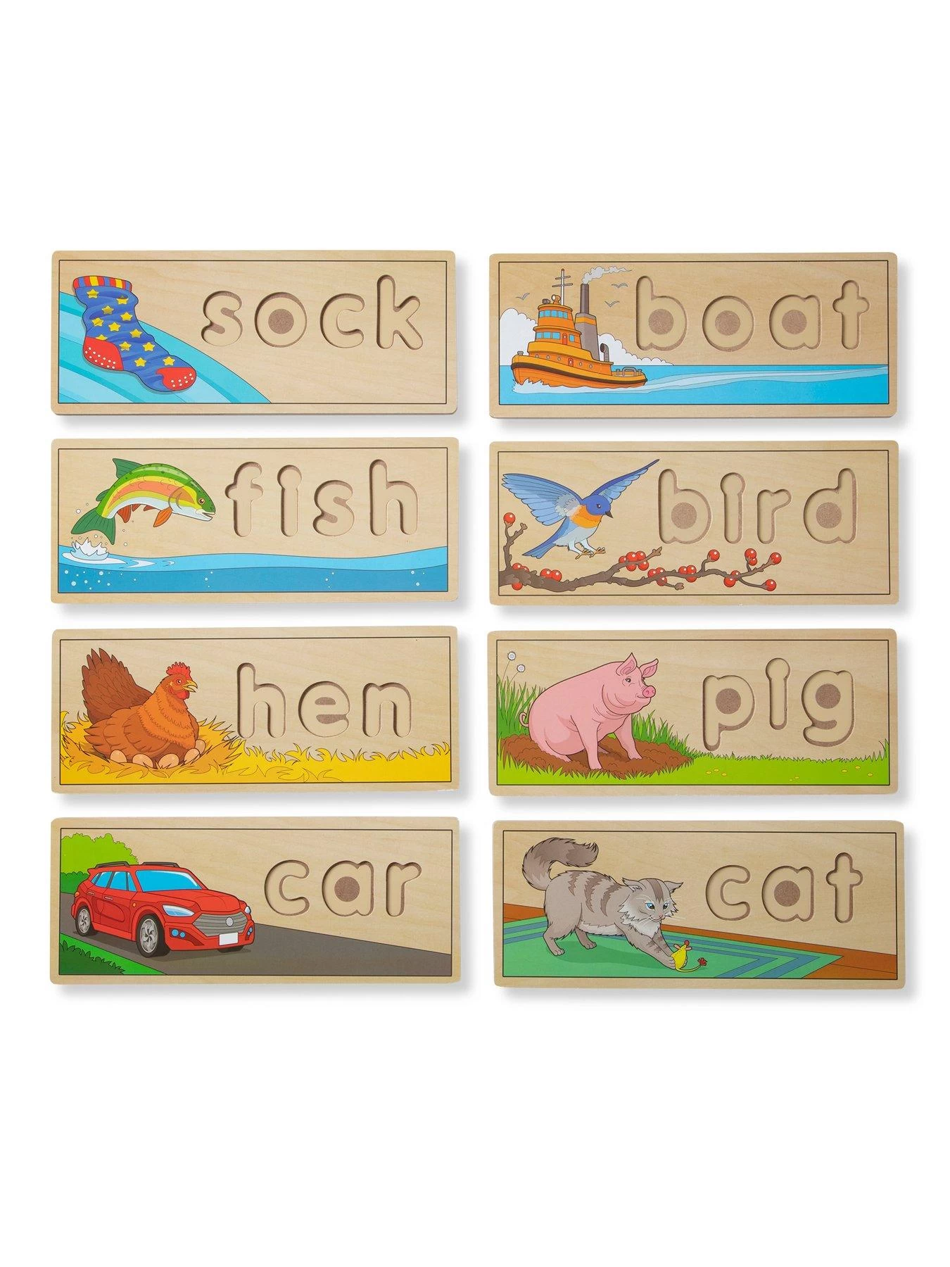 Complete a puzzle to spell a word, while developing a sight-reading vocabulary or use the letters for stencilling. 72 colourful wooden letters fit into the 8 two-sided cut-out boards to spell three- and four-letter words! All spelling and fine motor fun fits into one compact wooden storage case!