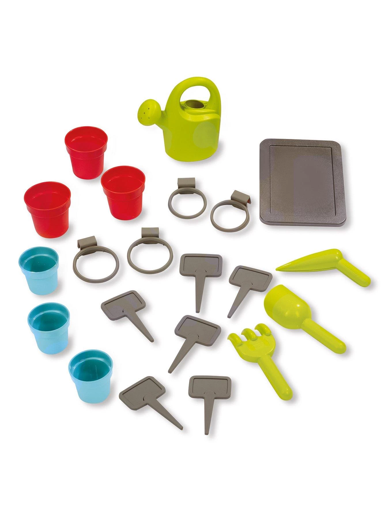 A mobile work table encourages little gardeners to get gardening, while stands and storage spaces are included so that they’ll have all the necessary accessories on hand! This house even comes with 3 tools (shovel, rake, dibble) and 6 pots. Also included is a slate with chalk to take note of plantings and the little gardener’s booklet having 3 clips to hang labels or seed packets.
